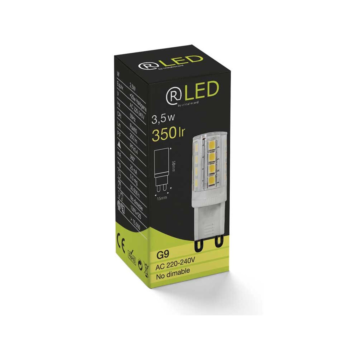Maximum reliability G9 LED capsule bulb. It consumes just 3'5 watts beaming up to 350 lumens of warm light 3000K. Their 360° beam angle will help to light up larger areas. Equivalent to 35 watts, use them as a longer lasting (30.000 hours) and money saving alternative by offering up to 90% less energy consumption, to replace G9 halogen bulbs.