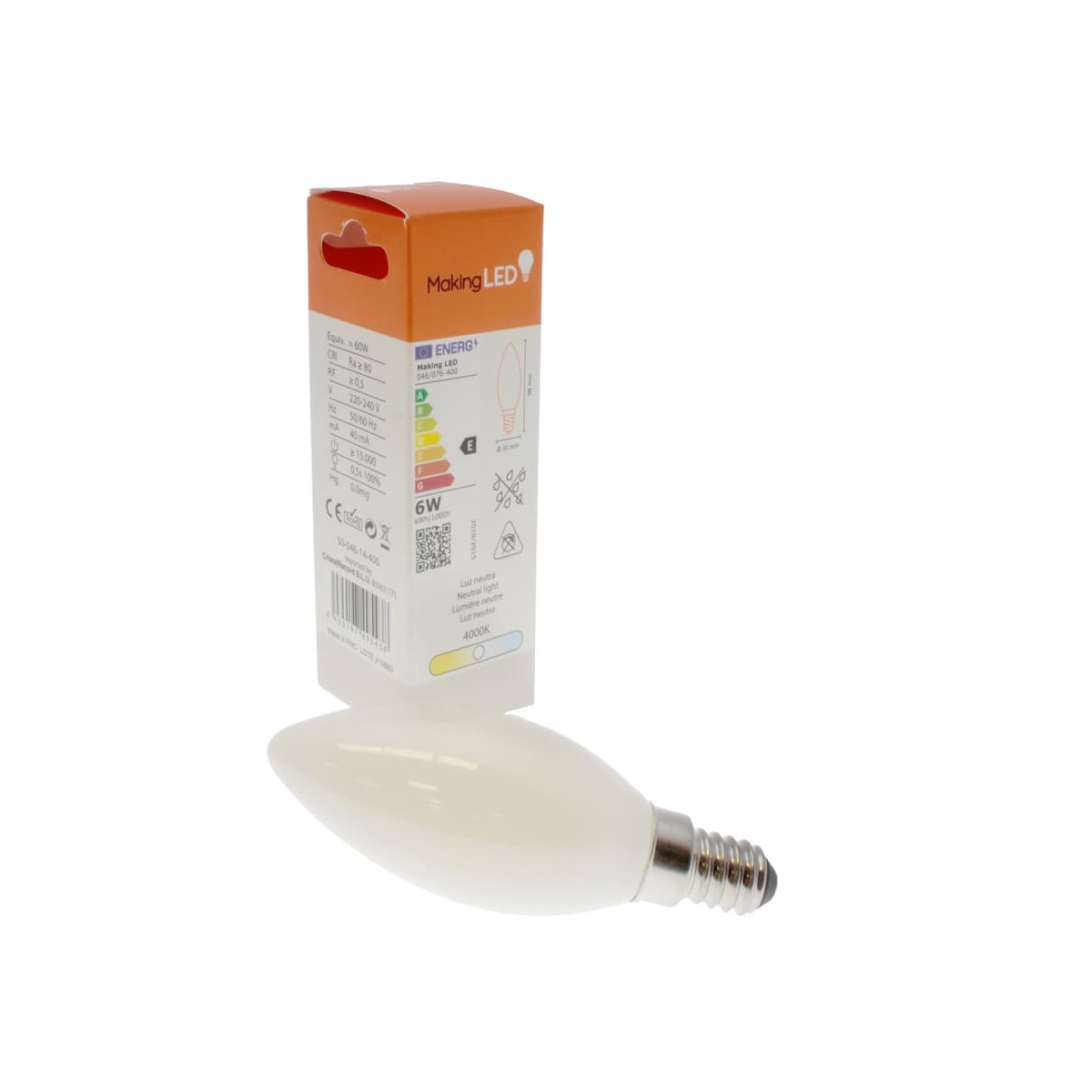 Milky LED Light Bulb C37 E14 6W 4000K