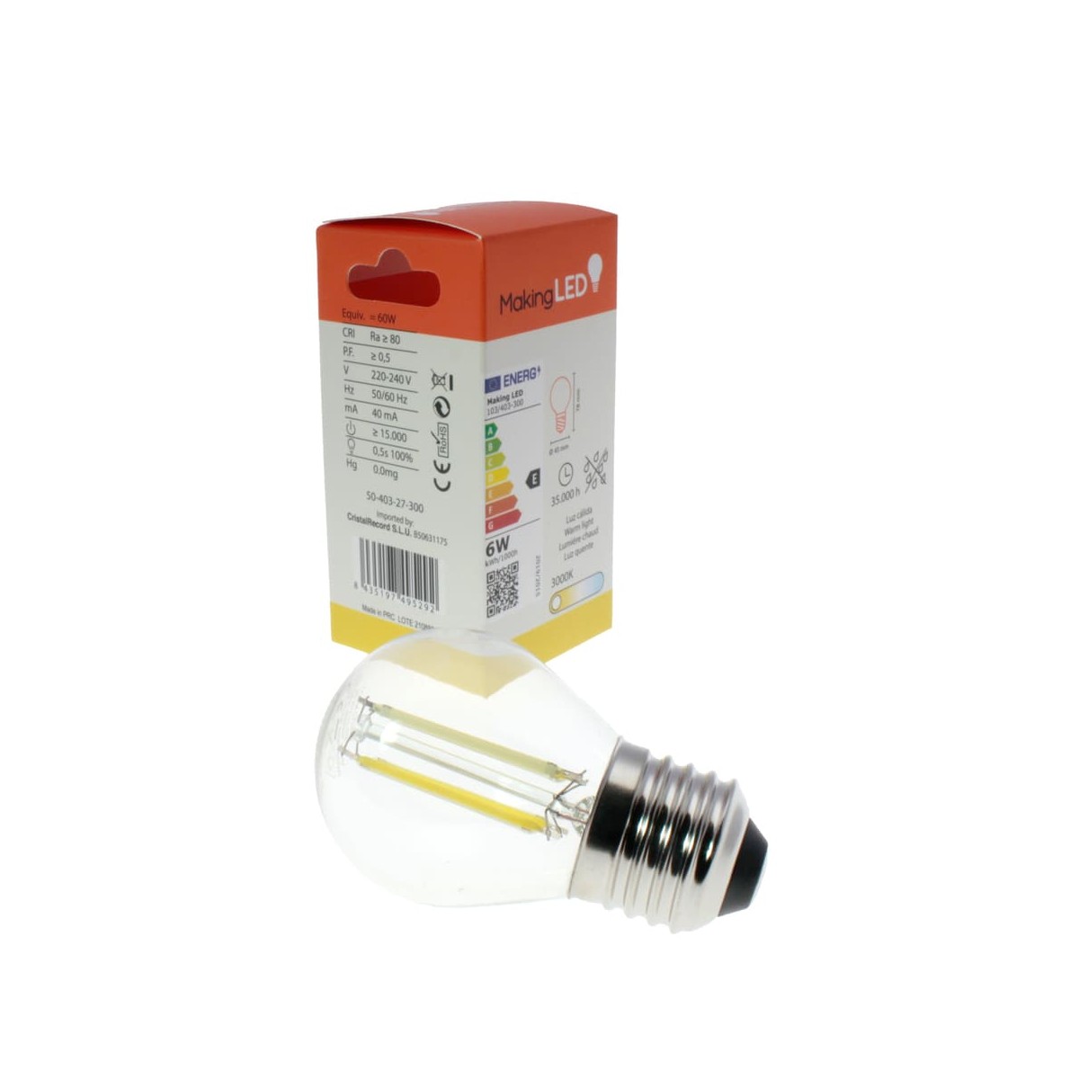 Dimmable LED Bulb G45 E27 6W 3000K Transparent