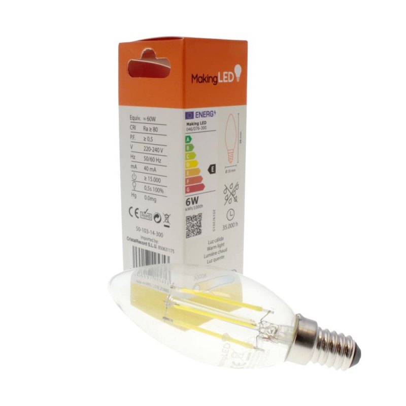 Dimmable LED Bulb C35 E14 6W 3000K Transparent