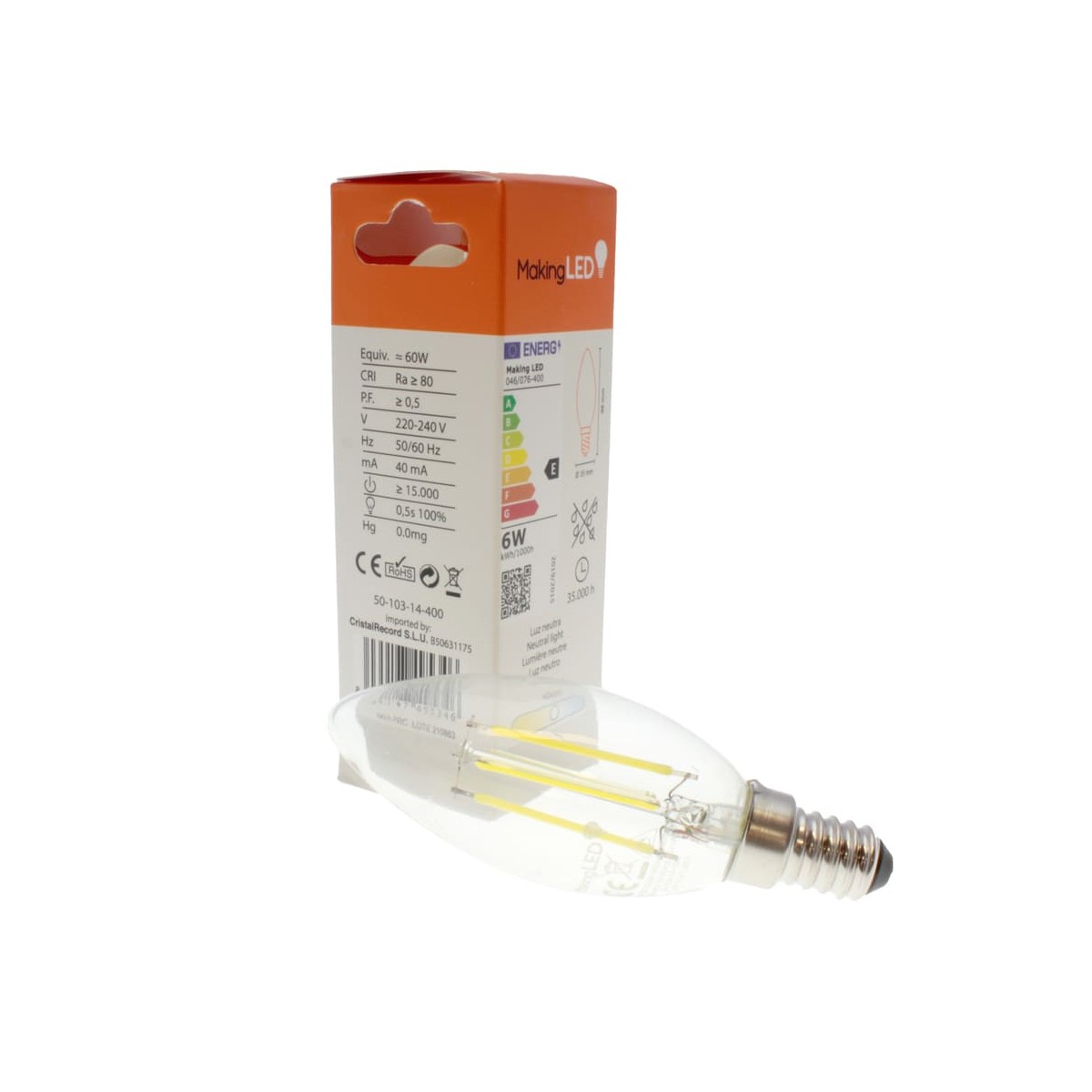 Dimmable LED Bulb G35 E14 6W 4000K Transparent