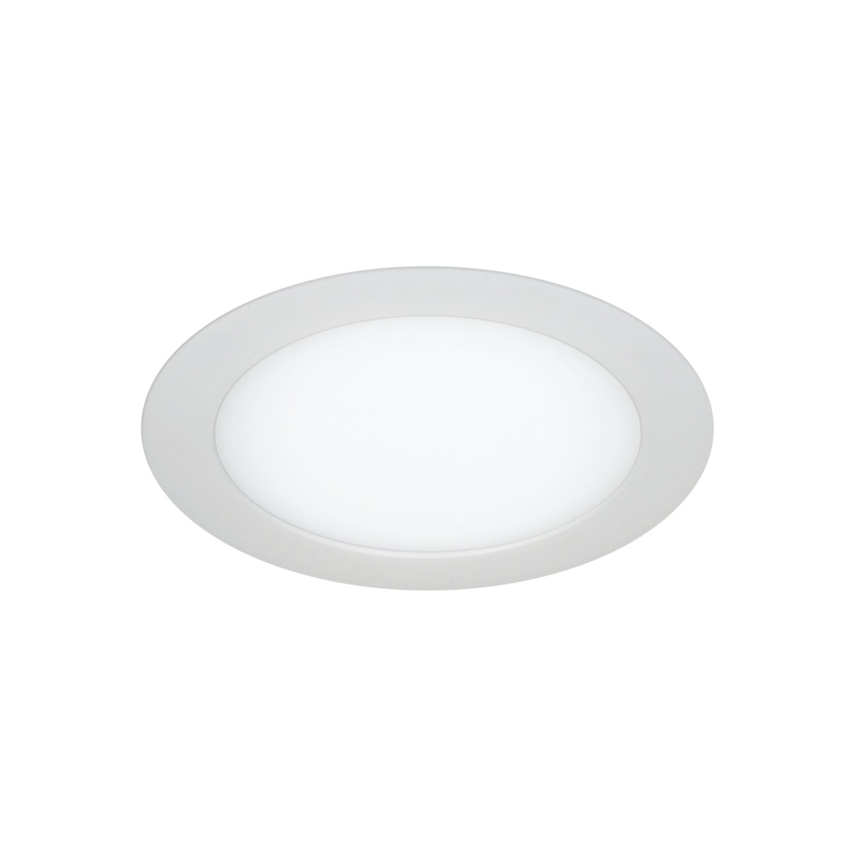 Round Recessed Downlight with integrated 6W LED illumination, with a luminous flux of 480 lumens Neutral light of 4000K. White lacquered aluminium structure with acrylic diffuser. Suitable for rooms such as kitchens and bathrooms.