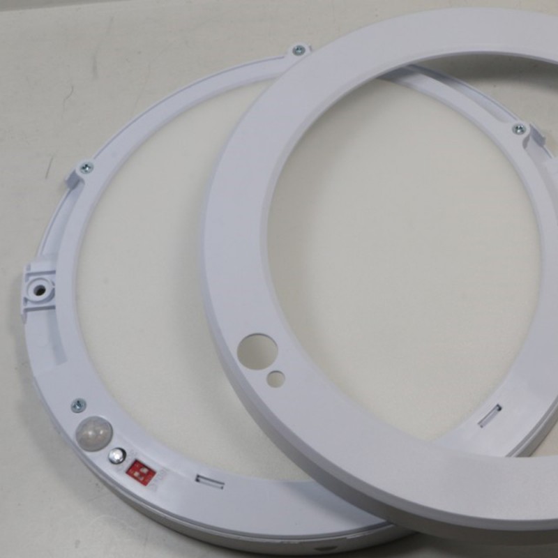 18W LED luminaire. It has a pre-installation temperature selector. It can be instalLED as a Flush Light or recessed with holes from 6 to 20cm thanks to its adjustable springs. It has a motion sensor that can work with light or without light. You can also change the color of the frame with a accessory (not included) in black or silver finish.
