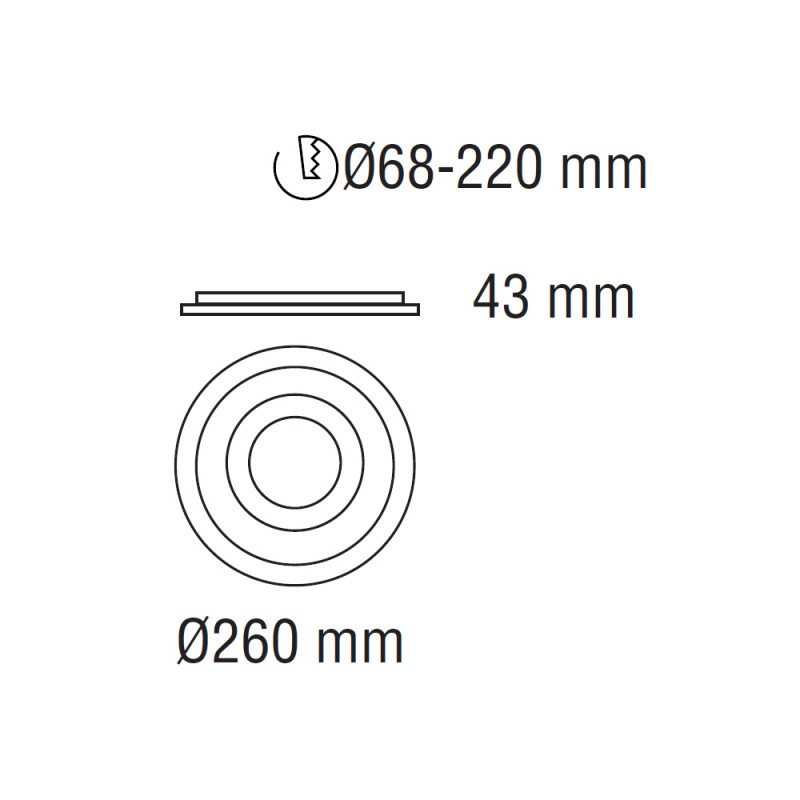 You can adjust the recessed luminaire to the ceiling void between 6.80-22 cm.
