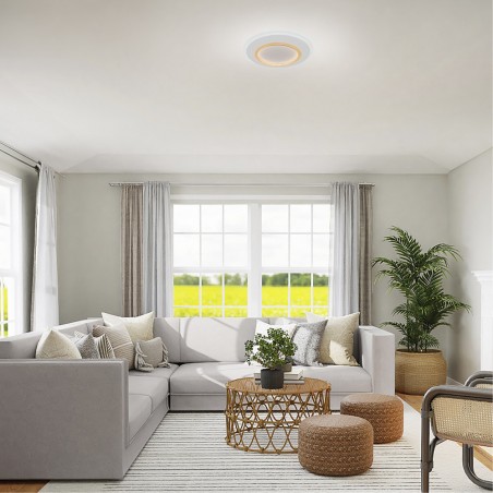 Halo recessed LED downlight. Downlight with 6 lighting modes designed for contract interior lighting projects. To change the lighting mode you have to switch the light on and off from the wall switch. The sequence is: neutral light, cold light, warm light, warm-cold light, cold-warm light, cold-warm light and night light.