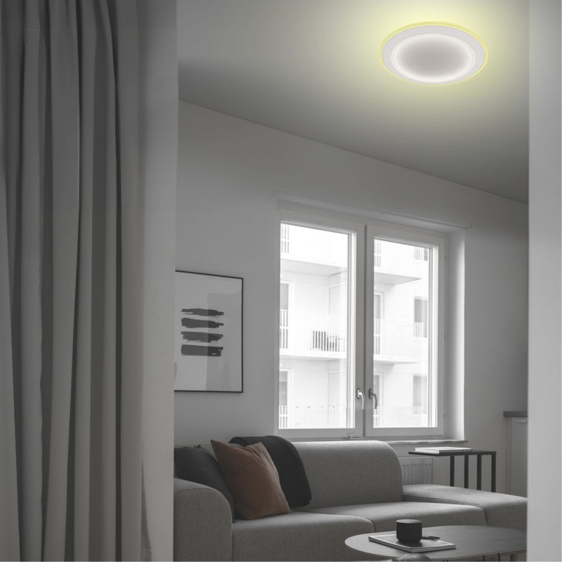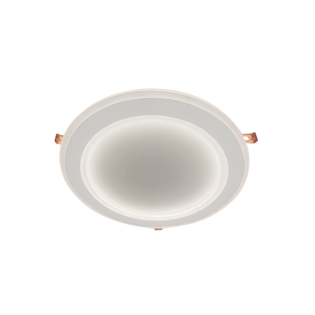 Halo recessed LED downlight. Downlight with 6 lighting modes designed for contract interior lighting projects. To change the lighting mode you have to switch the light on and off from the wall switch. The sequence is: neutral light, cold light, warm light, warm-cold light, cold-warm light, cold-warm light and night light.