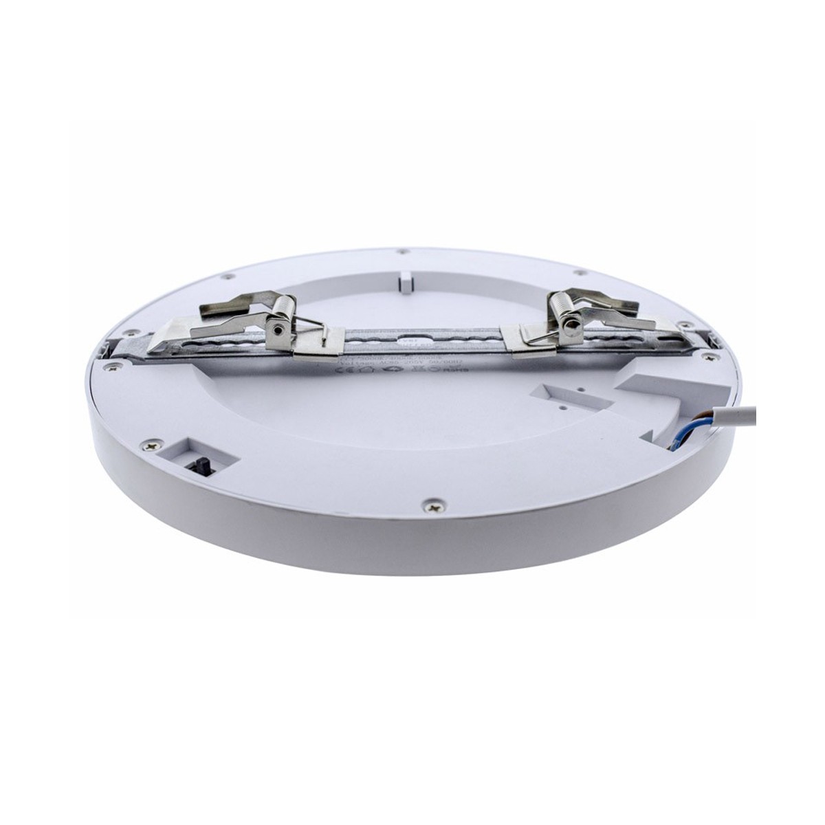 Gave 28W LED Downlight. Choose the lighting temperature before installation. It can be instalLED as a surface mounted or a recessed by adjusting to holes from 7 to 31 cm, including irregular or square holes, thanks to its sliding and easy to install clamps. The frame of the downlight is white, but you can add an easy to install magnetic nickel decorative ring.