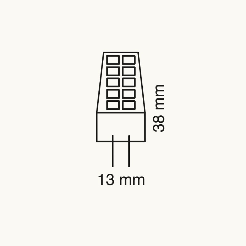 LED bulb GY6.35 warm light 2700K. Small size bulb type GY6.35 with 2.4W LED illumination and warm yellow light (2700K).