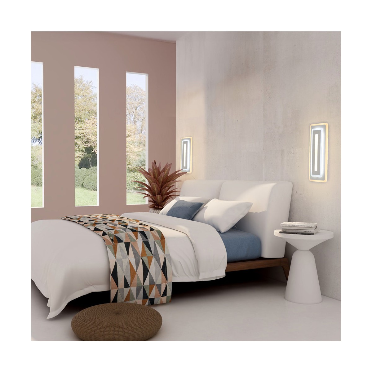 Cryn LED wall light with Smart technology. Rectangular wall light with dimmable lighting intensity and three different selectable color tones. To control the light you have to connect the wall light to a smartphone through an app. You can install it both on the ceiling as a ceiling light and on the wall as a wall light.