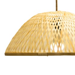 Braided natural bamboo lampshade. Natural lampshade designed to combine with a lamp holder to create a ceiling lamp. The light is projected both from the bottom part and through the braiding of the bamboo. Sena Big model with a diameter of 50 centimetres.