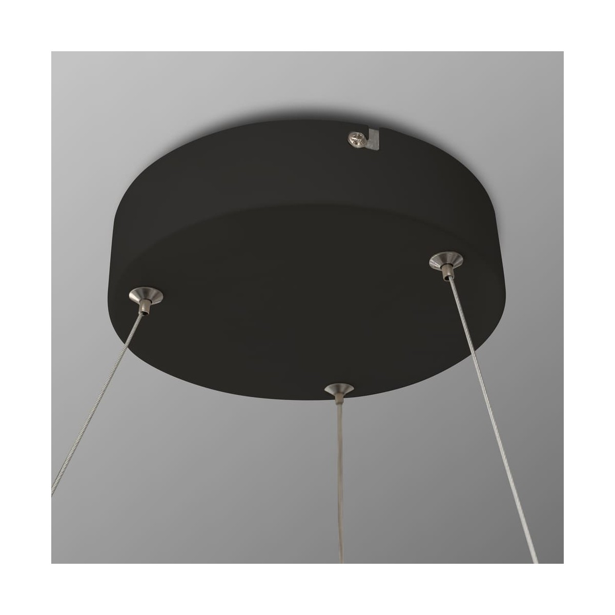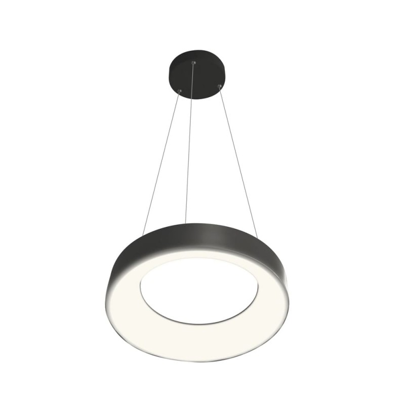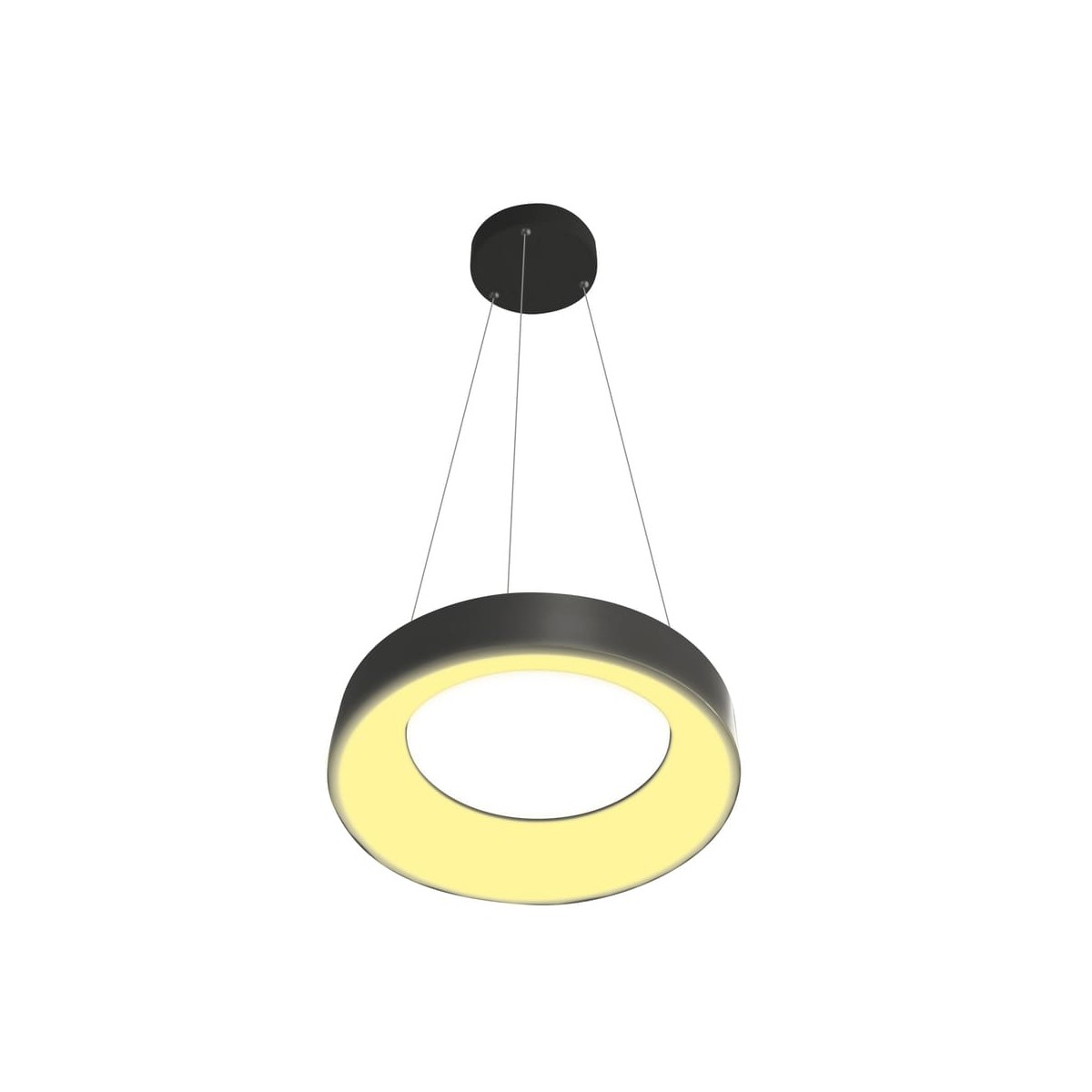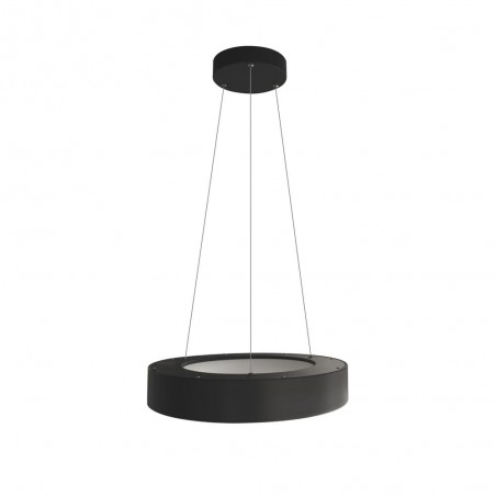 LED ceiling lamp Lyn with dimmable intensity and three colour temperatures. Circular ring-shaped shade with a polycarbonate diffuser running along the inside. You can adjust the light to your liking with the remote control. It also has a power-on memory so that when the light is switched on and off it remains at the last setting. Made of anthracite grey aluminium.