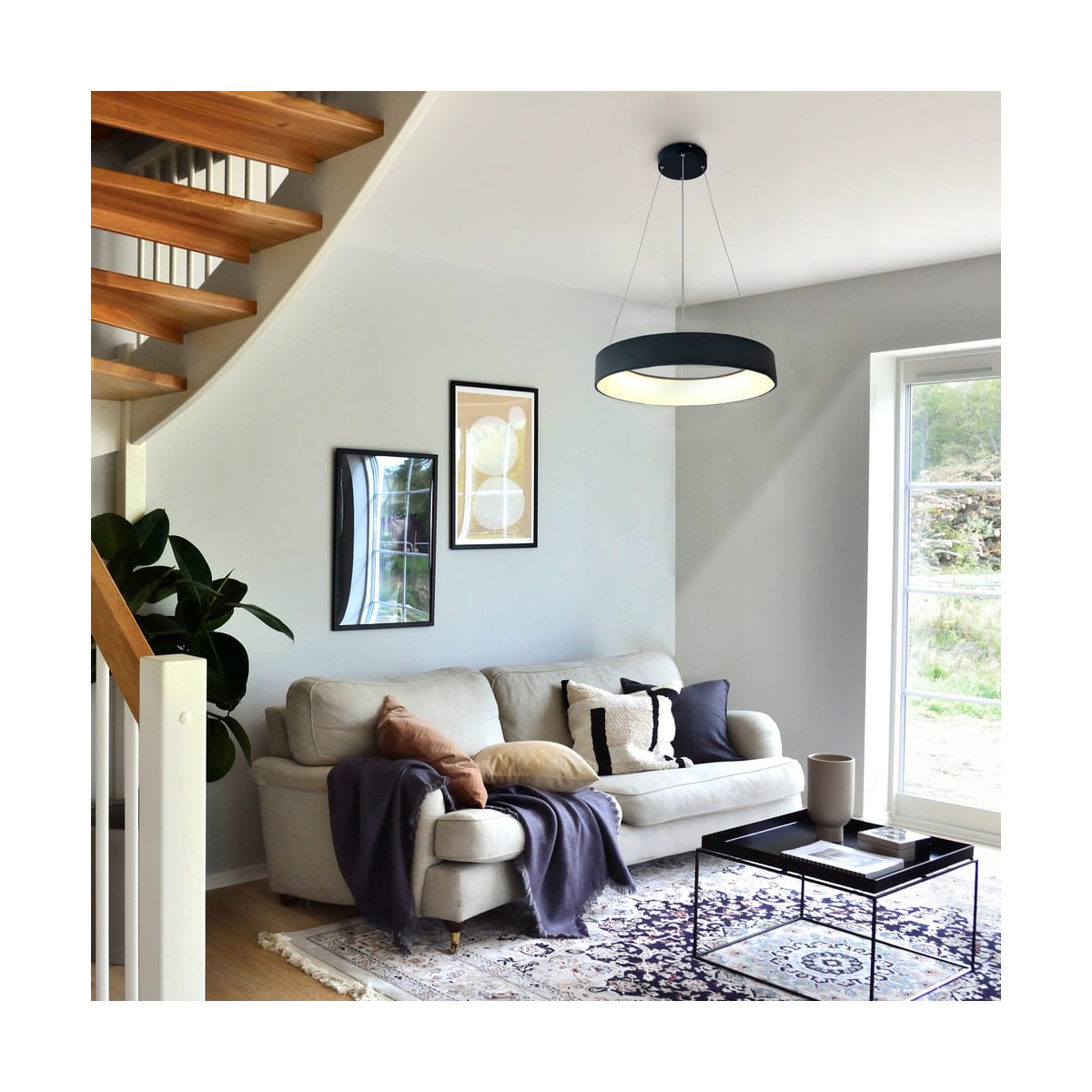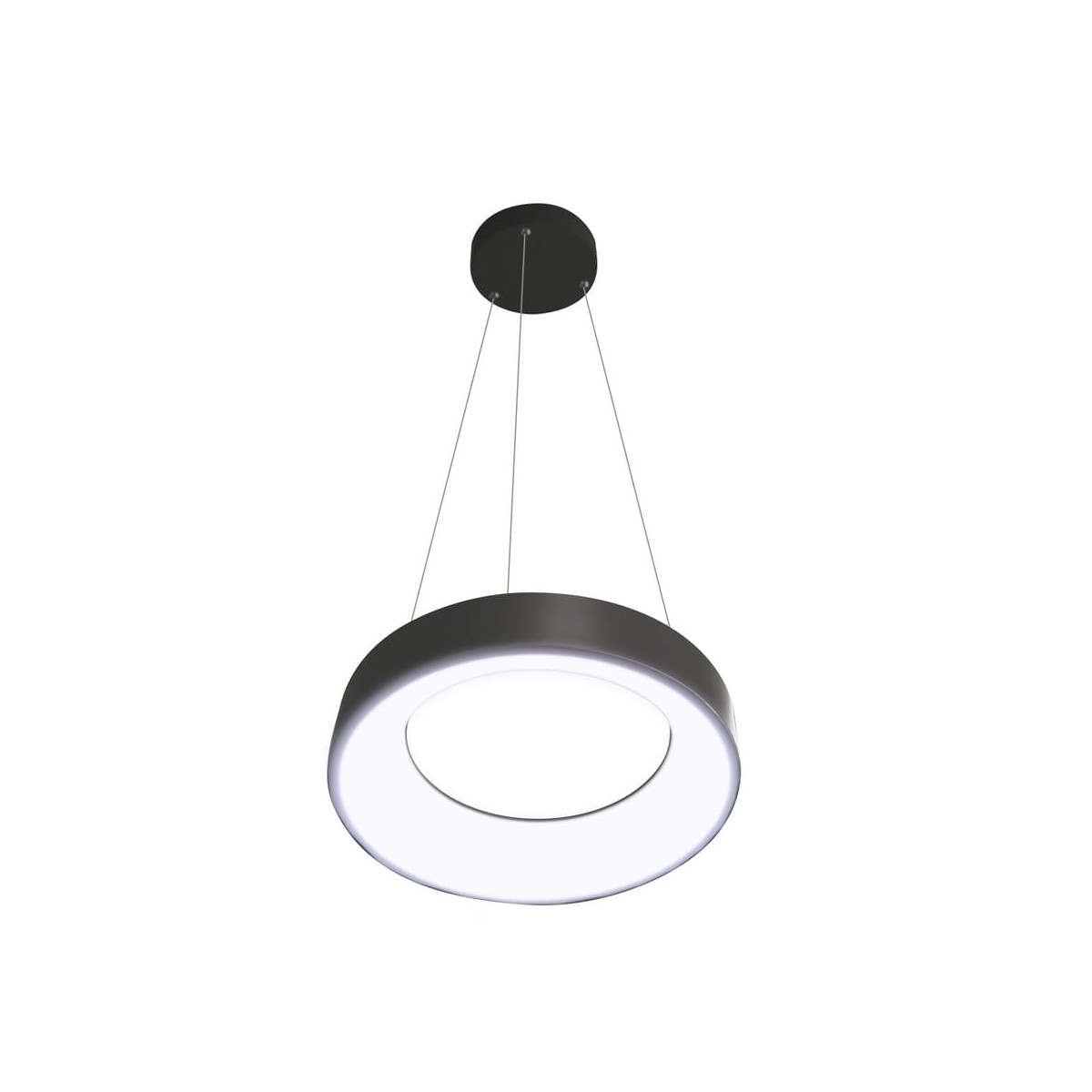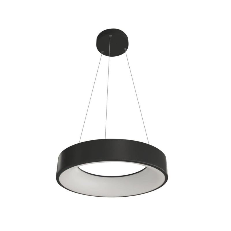 LED ceiling lamp Lyn with dimmable intensity and three colour temperatures. Circular ring-shaped shade with a polycarbonate diffuser running along the inside. You can adjust the light to your liking with the remote control. It also has a power-on memory so that when the light is switched on and off it remains at the last setting. Made of anthracite grey aluminium.