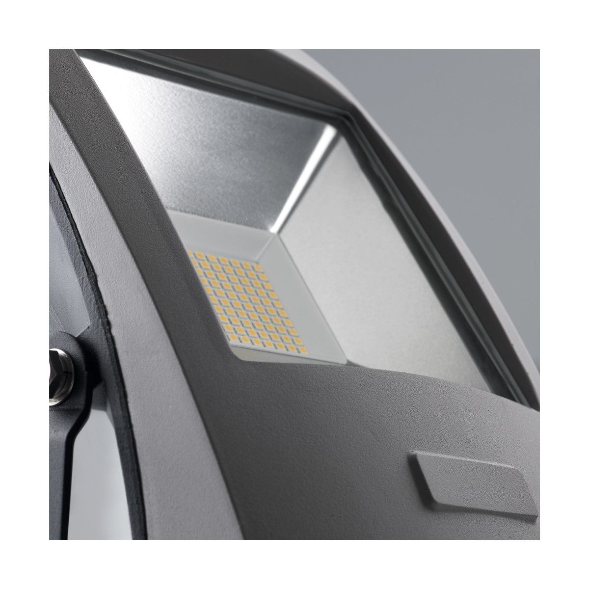 20 watt Outdoor LED Floodlight with warm LED light in a grey finish. It is adjustable and can be moved up and down. Designed with a transparent lens it includes LED technology, providing a better clean and uniform light with 30.000 hours' lifespan.