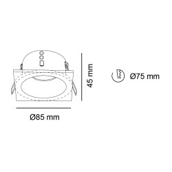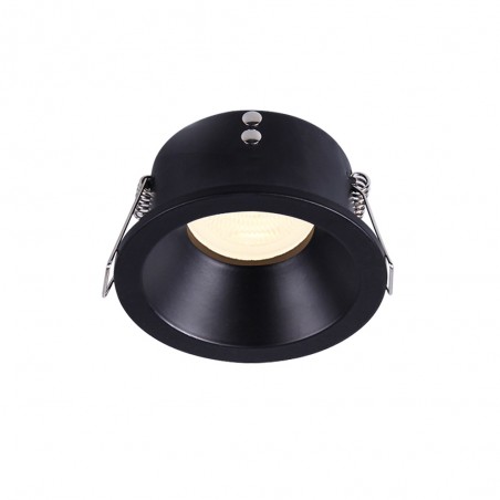 Fixed recessed downlight with IP65 degree of protection. Round black recessed downlight suitable for installation as lighting in outdoor areas such as balconies, terraces and gardens. It is made of black aluminium and is installed in the recessed ceiling with a 75 mm hole. Lampholder GU10 included.