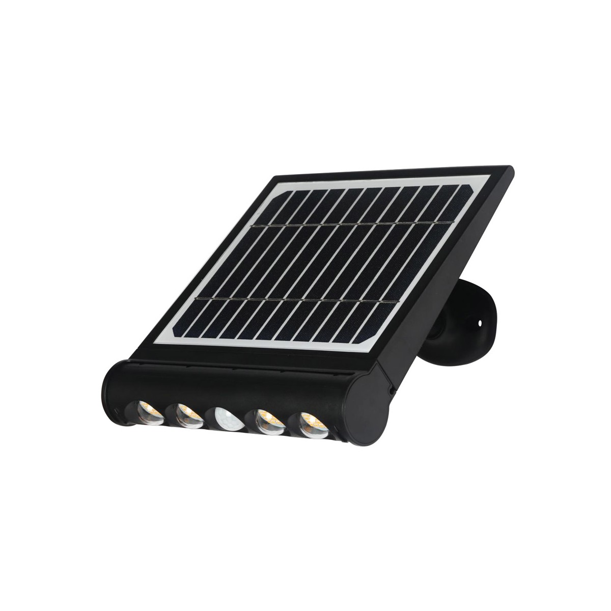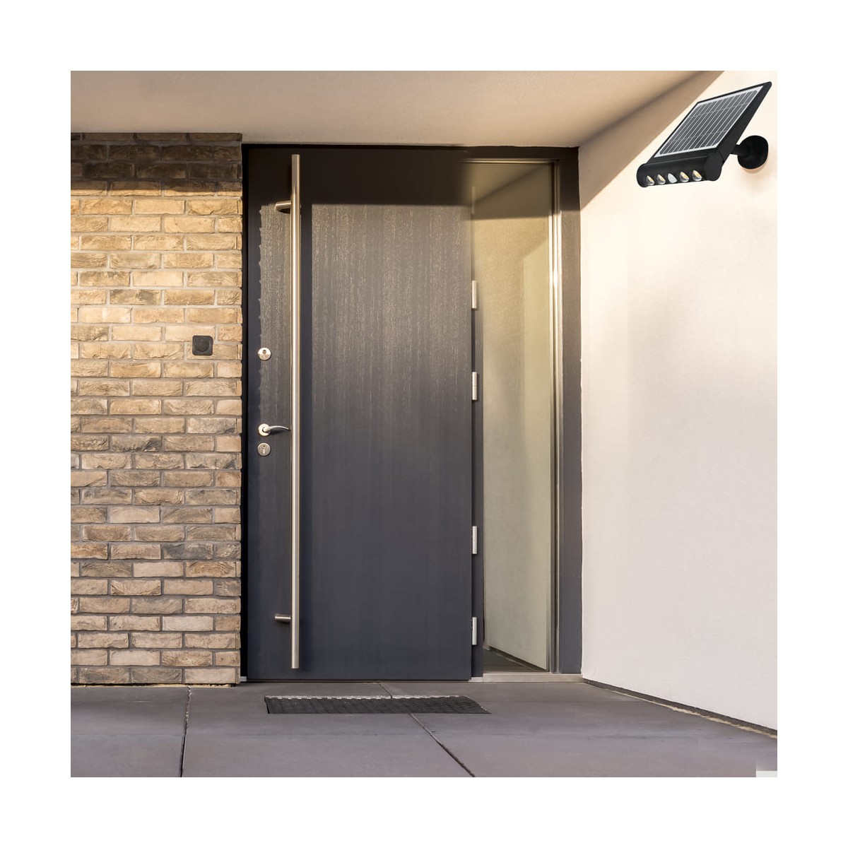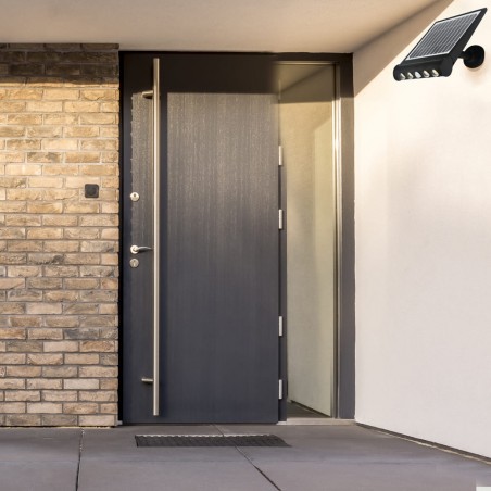 Mix solar LED floodlight for outdoor lighting. PIR sensor with a range of 8 metres and 120º angle, very practical for installation in outdoor passage areas. The floodlight can be oriented 180º and has a solar panel to charge the battery with daylight. With the switch you can turn the wall light on and off and select one of the two operating modes. Removable charging panel.