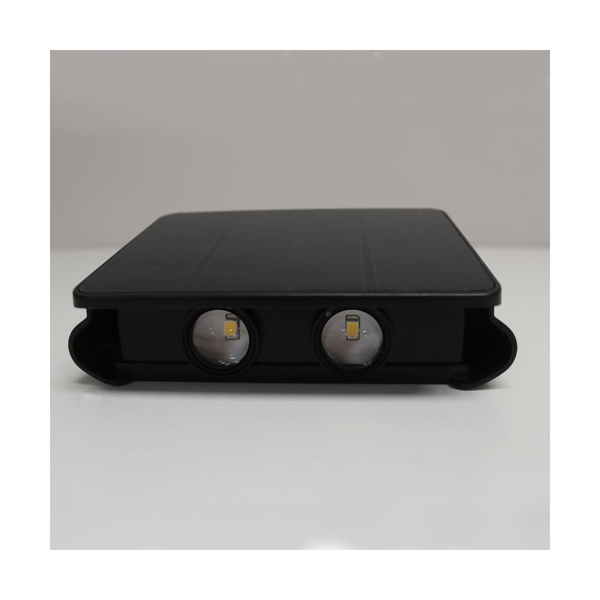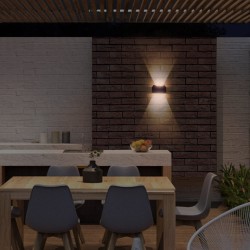 Solar LED wall lamp Nil with up and down light. It can be used without consuming light as it has a solar panel to charge the battery during the day. The wall light has a twilight sensor and power-on memory. Integrated LED lighting with warm white colour temperature (3000K), emitted upwards and downwards from the wall light. ON/OFF switch located on the back of the wall light.