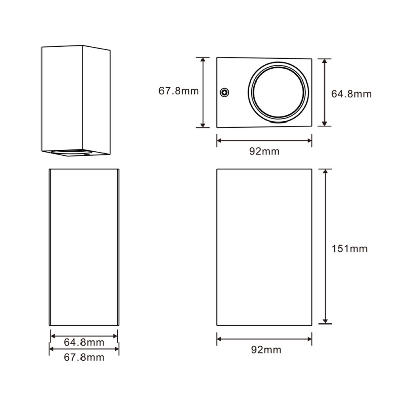 Wall lamp Confo for outdoor lighting. Black wall light with two points of light for GU10 bulbs. Compact design designed for easy integration into outdoor walls and facades. The light is projected upwards and downwards, illuminating the wall. Wall light made of black aluminium with an IP44 protection rating.