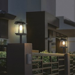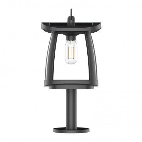 Zeffa solar LED bollard lamp. Bollard lamp with solar panel charging at the top designed for outdoor lighting. Black plastic structure and transparent diffusers. By means of a small switch on the front you can select between 4 light intensities (25-50-75-100%). Solar panel on the top to charge the battery and use without energy consumption. IP54 rating against possible splashes of water caused by the environment.