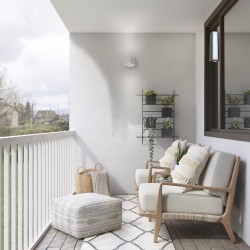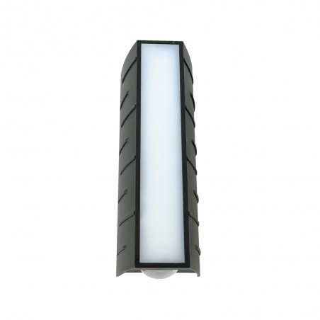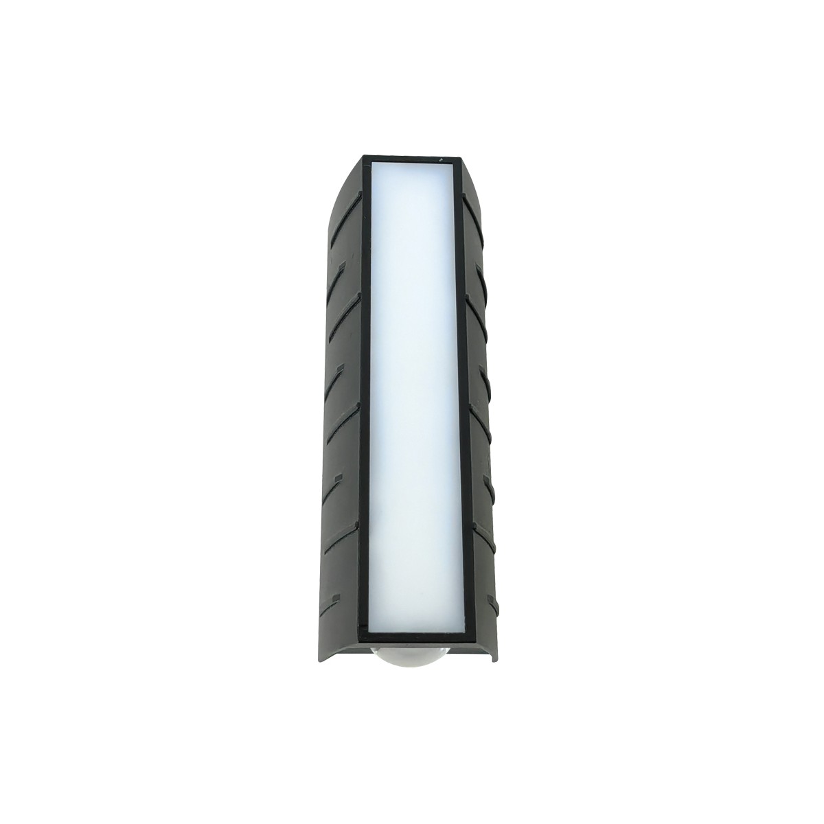 Outdoor wall light with warm light. Wall light with IP54 designed to illuminate balconies, terraces and gardens. Made of black aluminium with acrylic diffuser. The light is emitted both upwards and downwards (2x1W) as well as from the front (8W) through the diffuser. Integrated LED lighting in warm white (3000K).