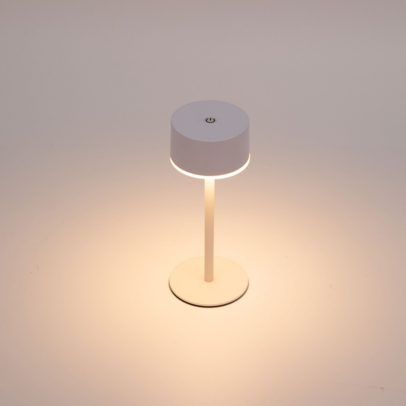 Rechargeable battery-powered table lamp Pope for gardens and terraces. Modern table lamp designed to provide warm lighting for outdoor dinners and gatherings. The light is easily turned on by pressing the top of the lamp. You can also change the lumen intensity.