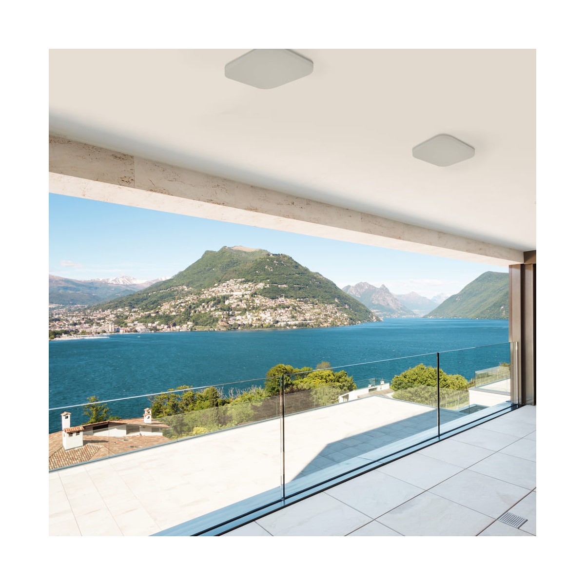 Square Technical LED Surface Mounted Downlight. High IP 54 in Neutral temperature 4000K and 1300 Lumens. Perfect as main or auxiliary lighting to be installed on the ceilings and walls within your balconies. terraces, patios, facades, porch light and also as bathroom lighting.