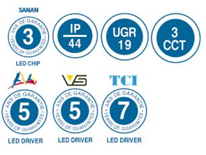 Round Technical LED Downlight for ceiling. Thanks to its IP44 it is recommended for damp places. Driver included.