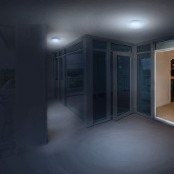 Round Technical LED Surface Mounted Ceiling Light. High IP 54 in cold temperature 6400K and 1200 Lumens. Perfect as main or auxiliary lighting to be installed on the ceilings and walls within your balconies. terraces, patios, facades, porch light and also as bathroom lighting.