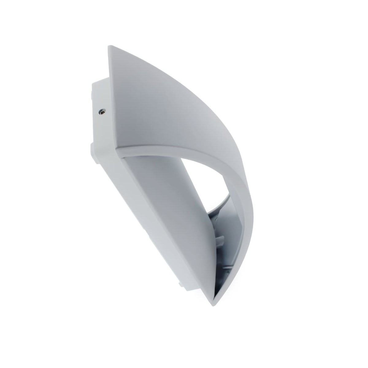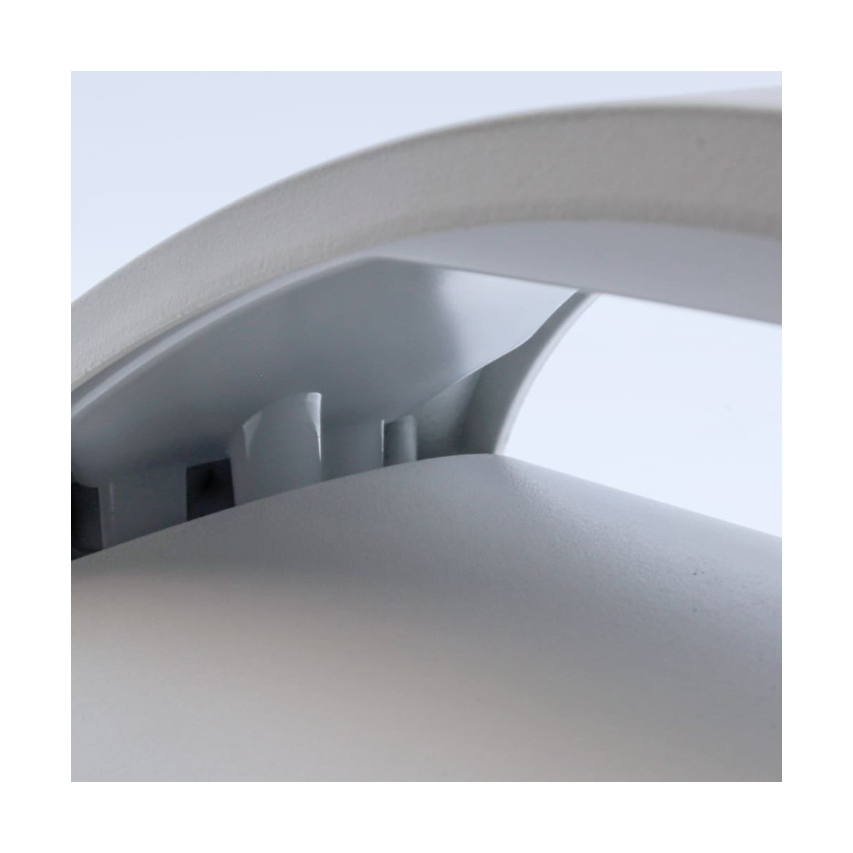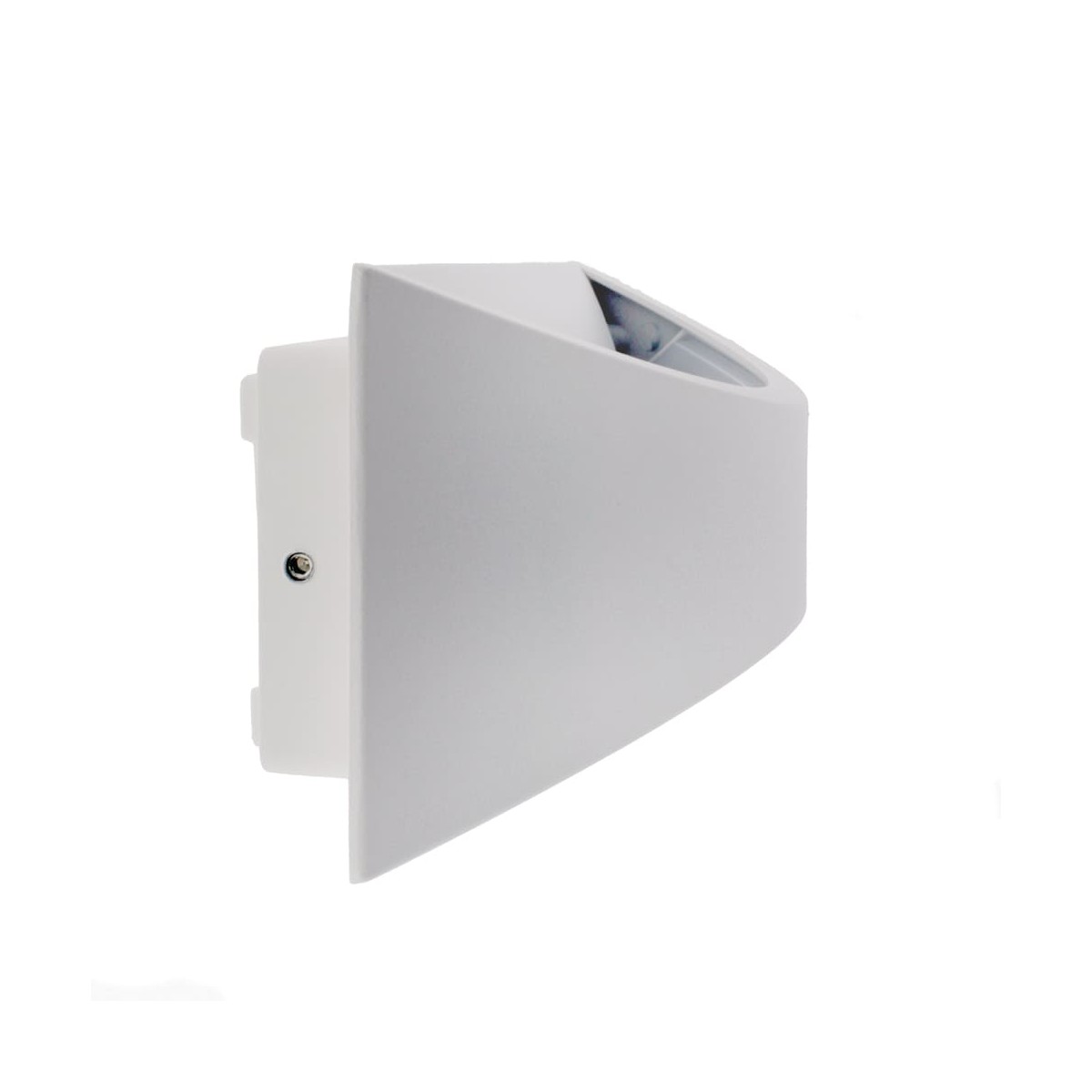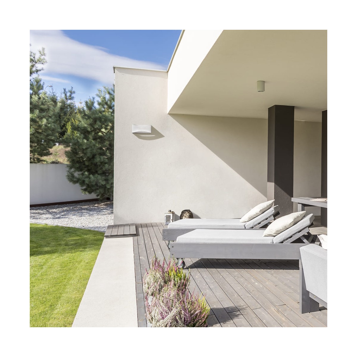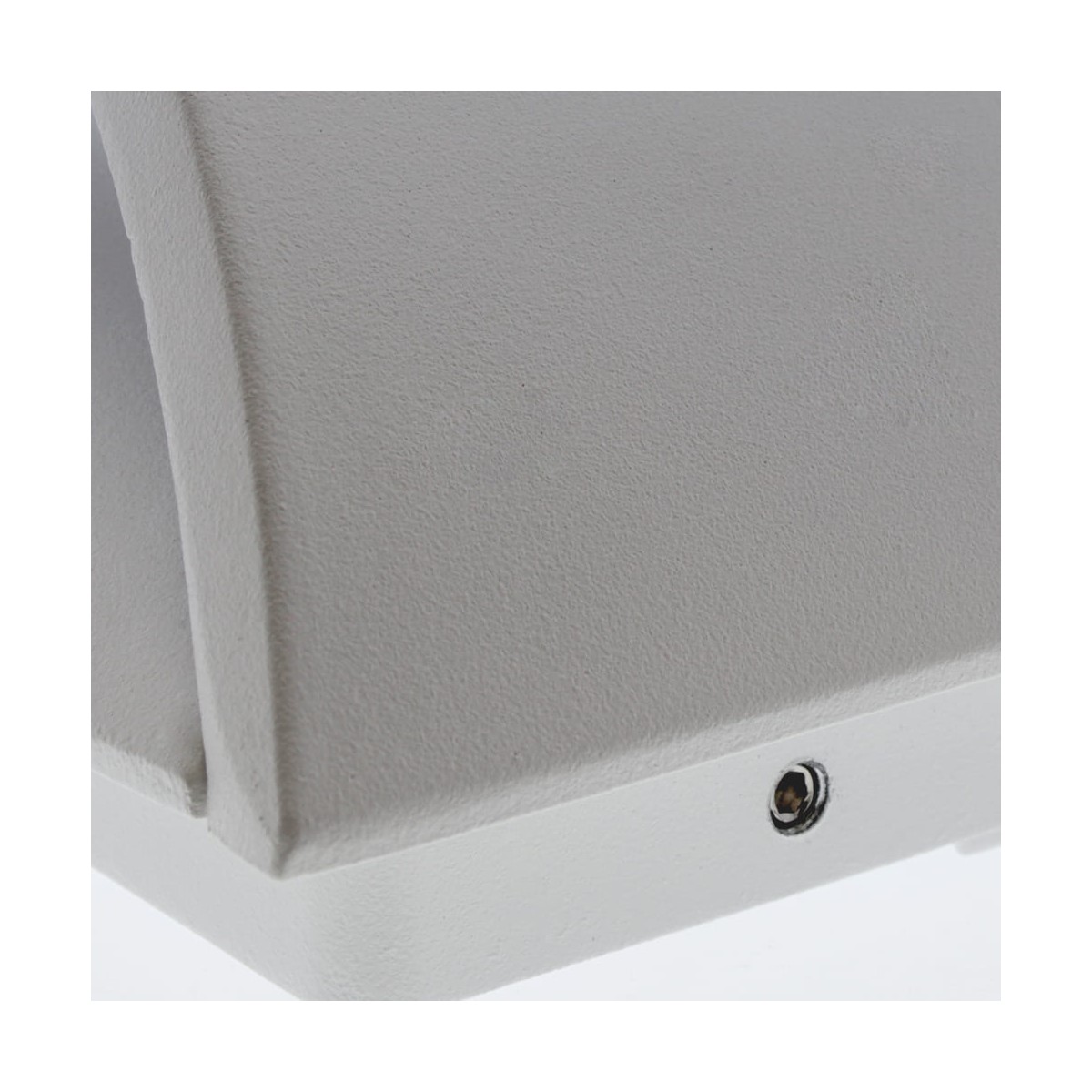 Wall light for outdoor and indoor lighting. This LED Wall Light, made of cast aluminium, has an IP54 rating that makes it perfect for gardens and terraces. It has integrated 6W LED lighting and a luminous flux of 360 lumens with neutral light. It provides a wide beam of light that illuminates the wall in an upward and downward direction, creating a pleasant ambient light without disturbing the view. The surface of the wall light has a textured matt white finish.