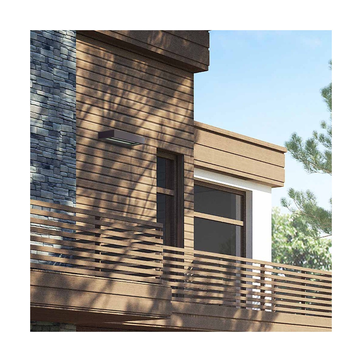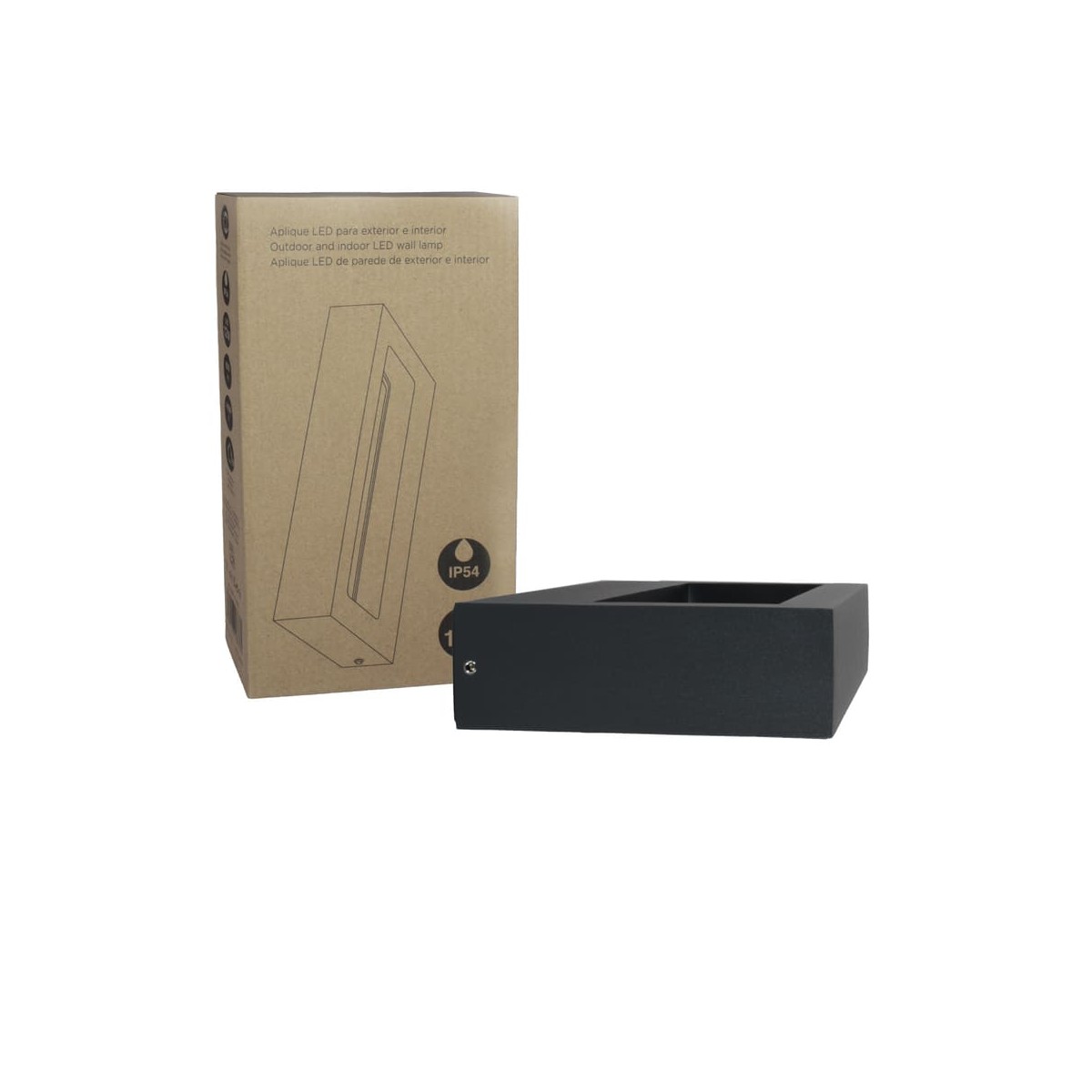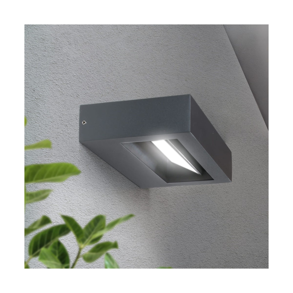 Outdoor wall lamp with integrated 12W LED lighting. Natural white light with 850lm. The rectangular wall lamp in anthracite grey is fixed but allows the light source to be directed 360° allowing you to create different lighting and atmospheres. Highly water resistant with an IP54 rating, it can be installed in gardens and uncovered terraces without any problems.