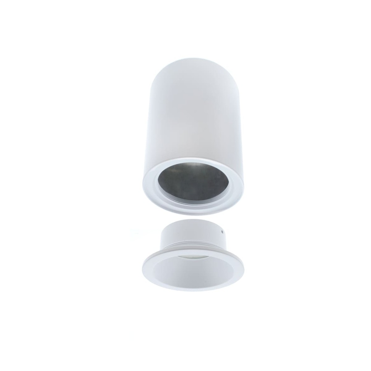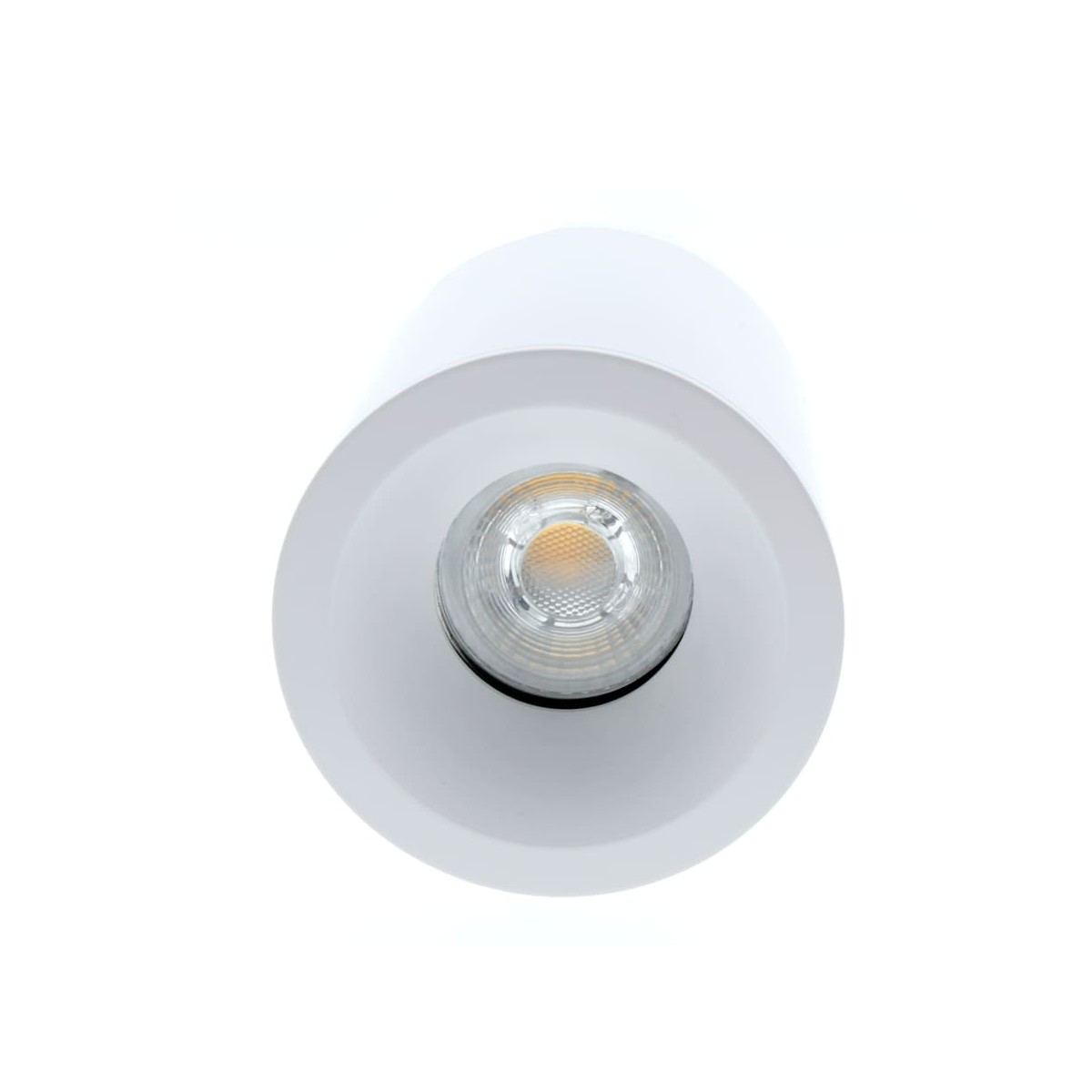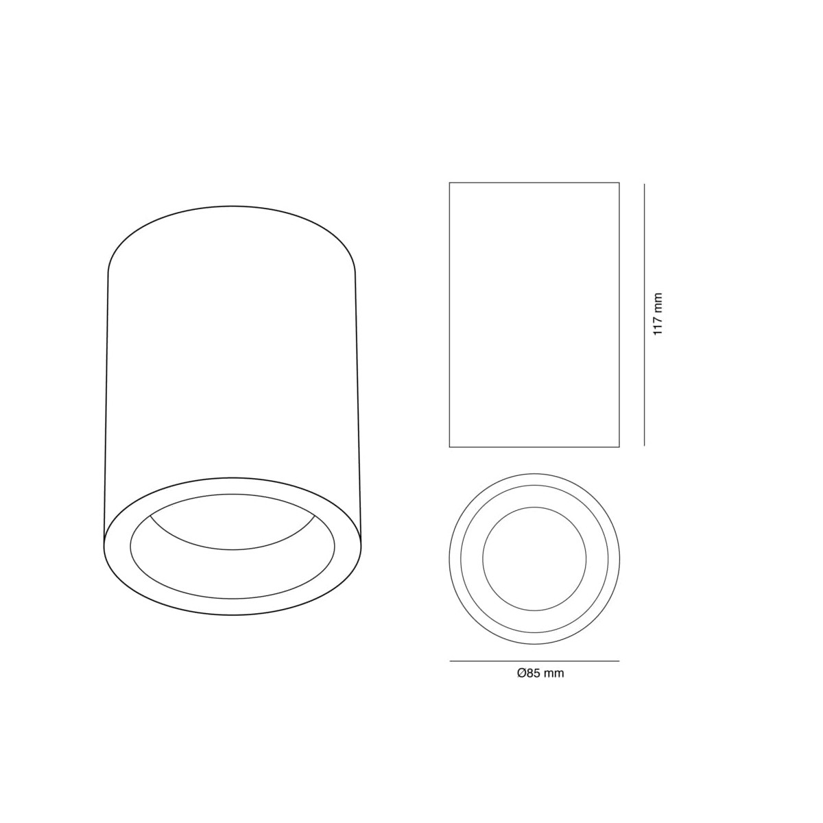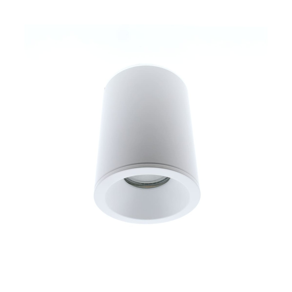 Cylindrical ceiling spotlight for GU10 bulb, easy to install and replace the bulb without disassembly. The spotlight is made of aluminium and is fixed, so it is perfect to illuminate a fixed point vertically.