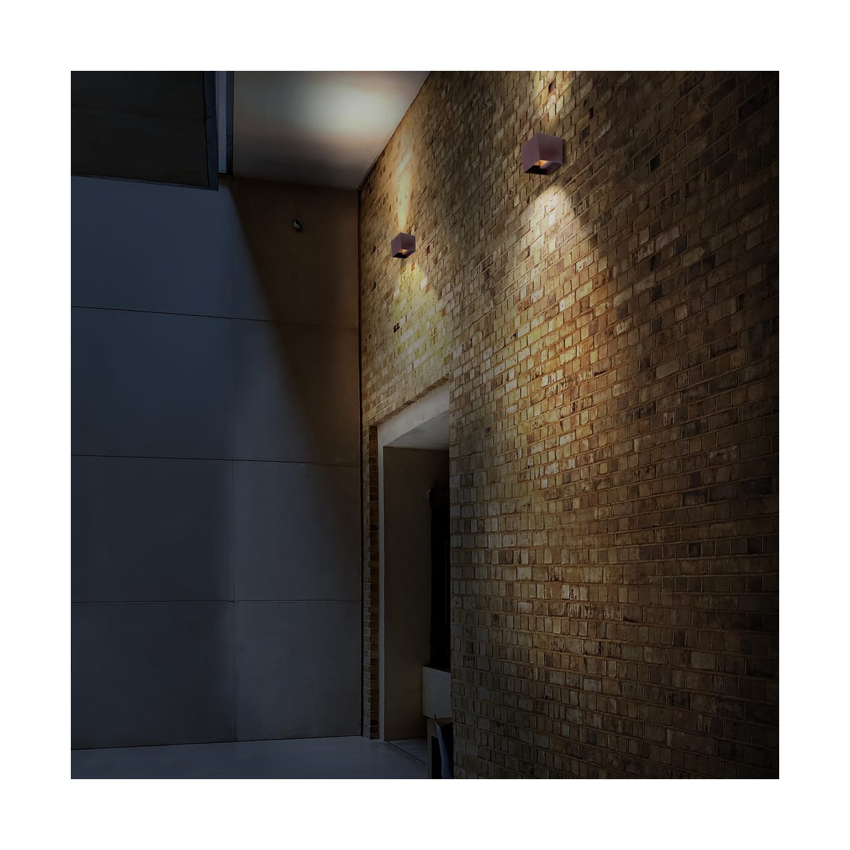 LED wall light for outdoor and indoor use with IP54, waterproof. With this wall light you can regulate the beam of light created by the two light sources thanks to the folding tabs inside. This way you can create different atmospheres with a high optical comfort thanks to its technology to reduce flicker. It has a total power of 10W, 5W each of its light sources and a luminous flux of 700lm. This model is made of aluminium and is available in a textured white, anthracite grey or rust brown finish, with a choice of neutral or warm light.