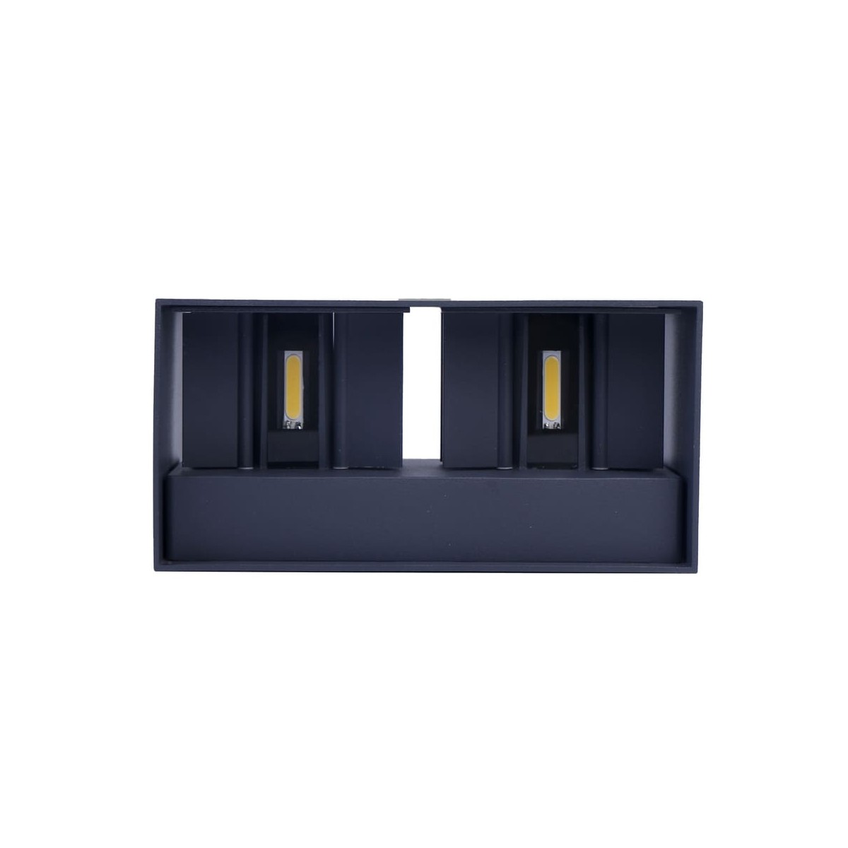 LED wall light for outdoor and indoor use with IP54, waterproof. With this wall light you can regulate the light beam created by the wall light with its four light sources thanks to the folding tabs inside the wall light. This way you can create different atmospheres with a high optical comfort thanks to its technology to reduce flicker. It has a total power of 20W, 5W each of its light sources and a luminous flux of 1400lm. This model, made from aluminium, is available in a textured white or anthracite grey finish, with neutral lighting.