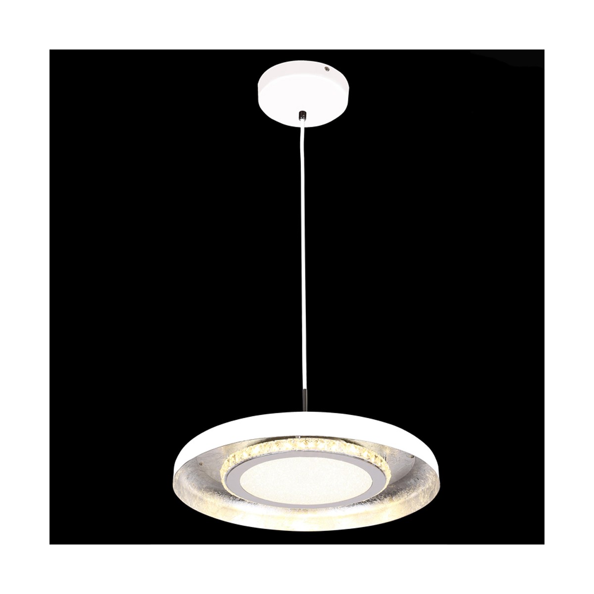 Elegant design LED Pendant Lamp with cover side of the metal structure in white finish and the inner side in shiny golden. Great choice for as decorative lighting with integrated LED lighting 12W, 840lm in neutral temperature of 4000K. Two lighting sources that can be switch one by one or all together.