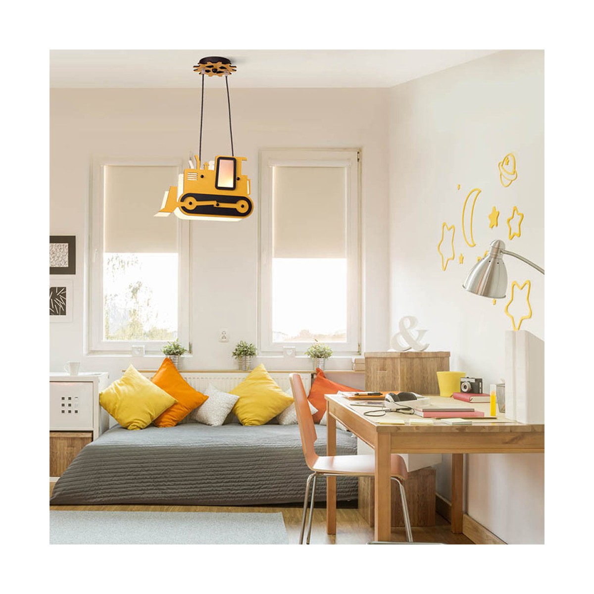 Ceiling lamp in the shape of a fun excavator in yellow. Children's lamp perfect for decorating children's rooms. Bulbs are easily replaced.