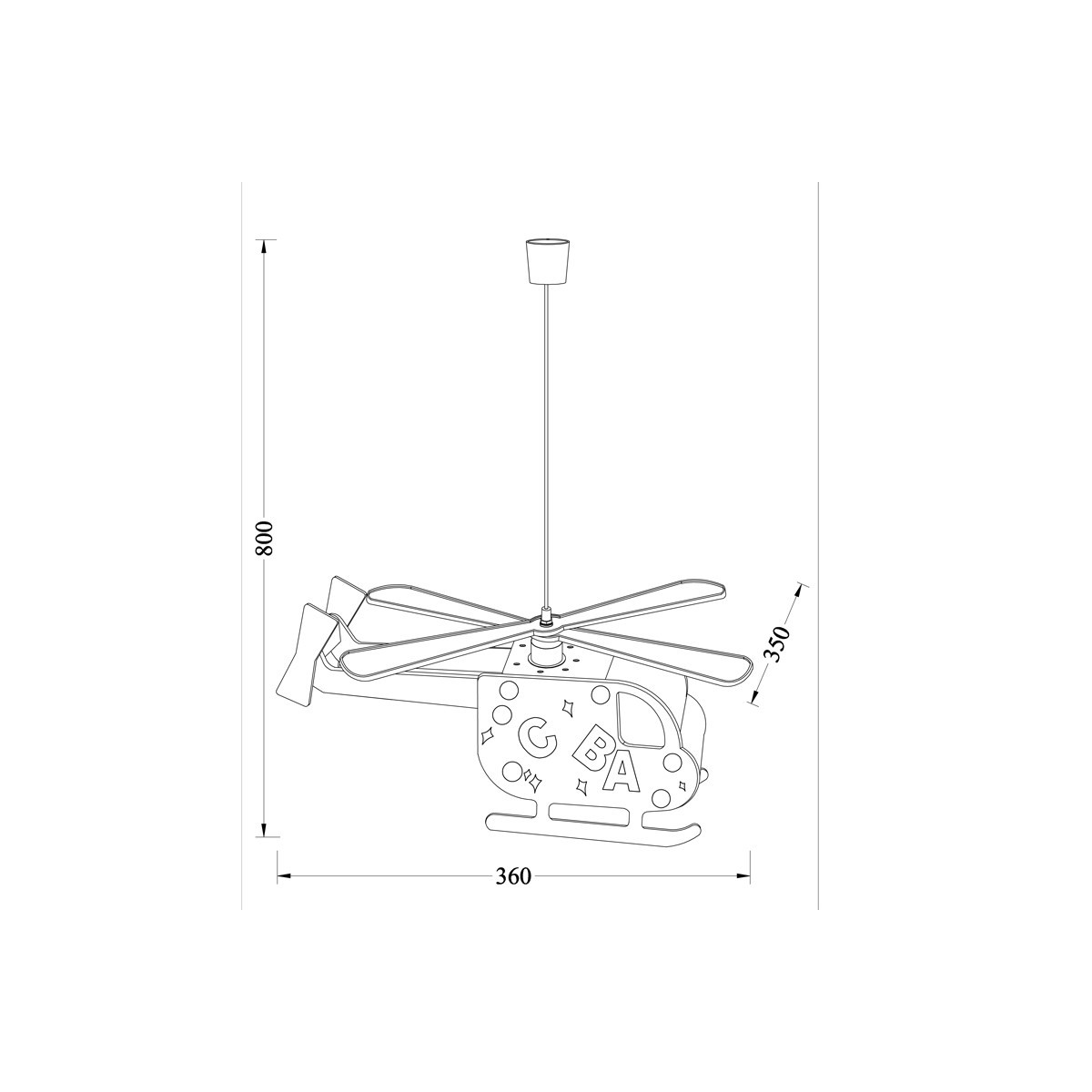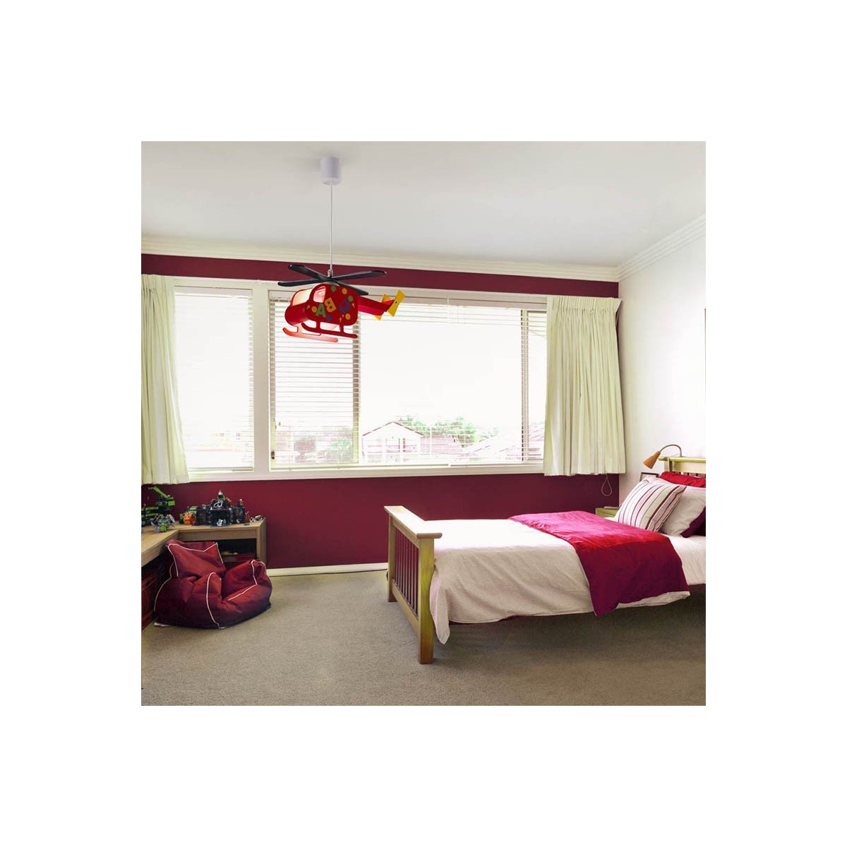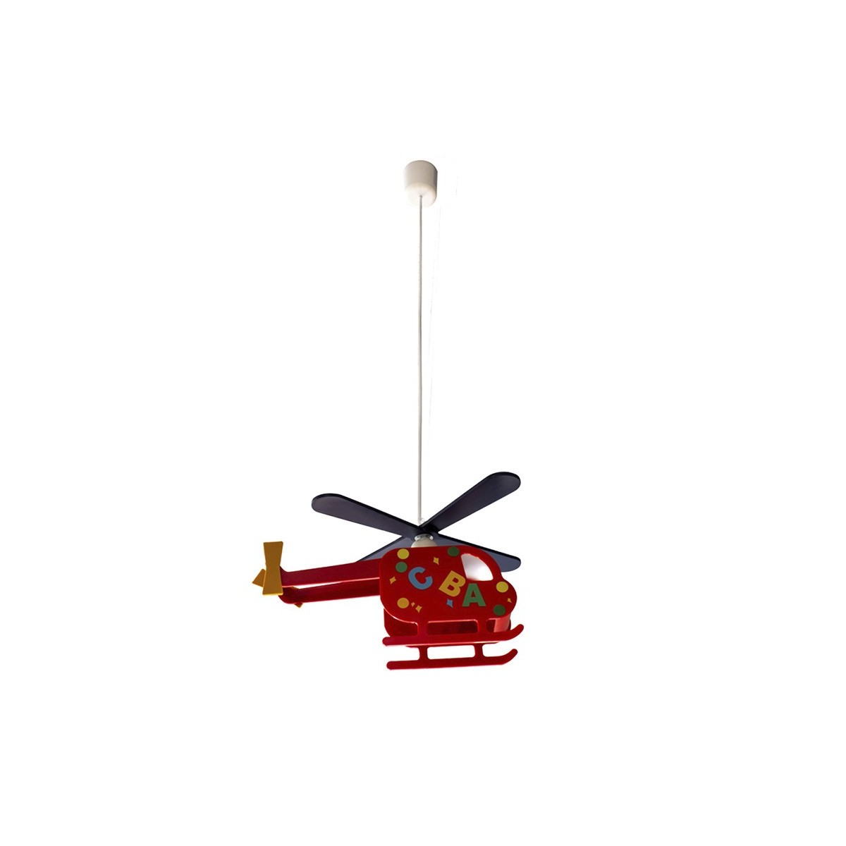 Red Helicopter Pendant Light for kids room. Helicopter shape shade made of plastic, for a safe use, is a great decorative element for children that are kin in airplanes, aviation, or just to complete your interior with an expressive red colour shade. Works with a E27 light bulb, not included.
