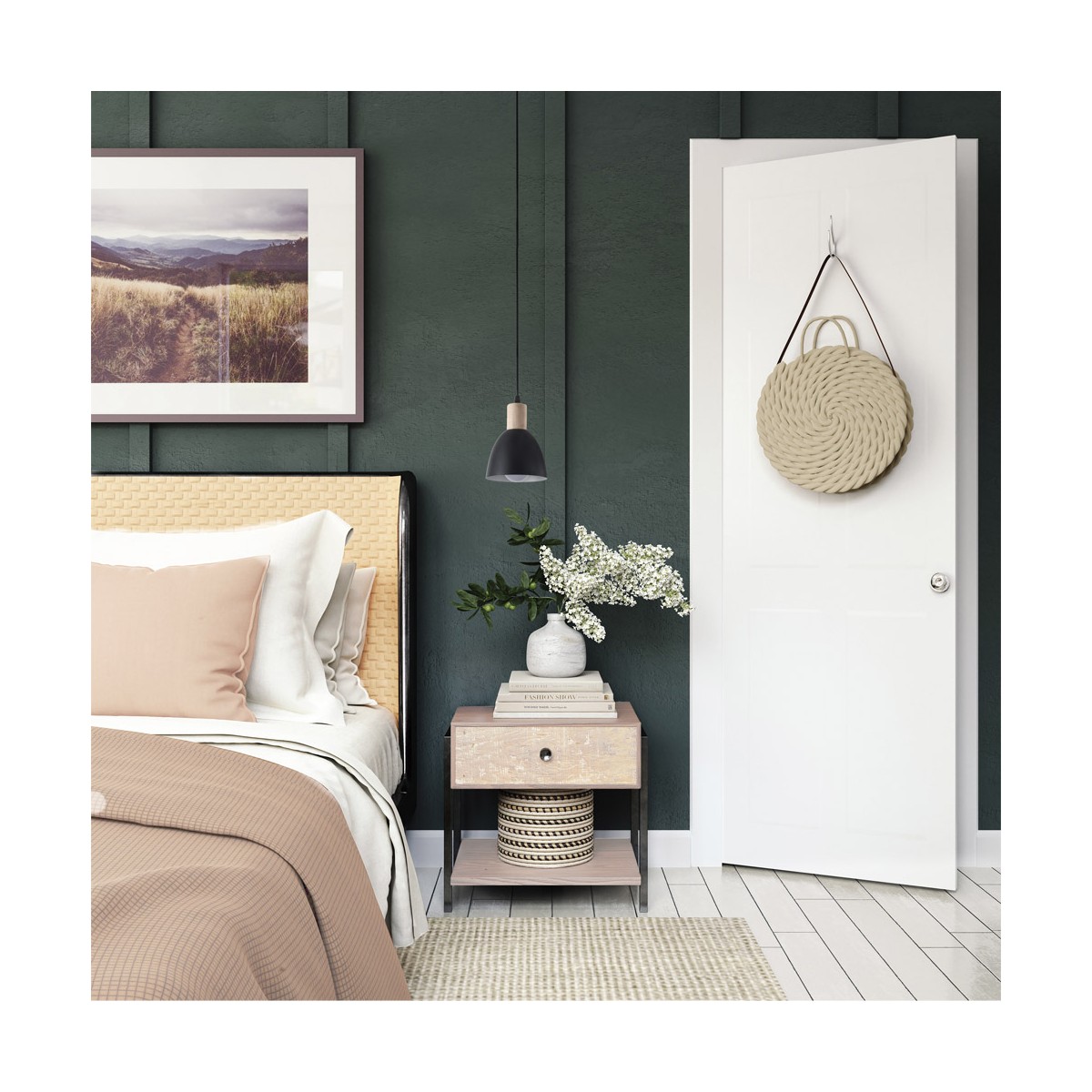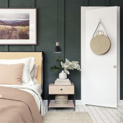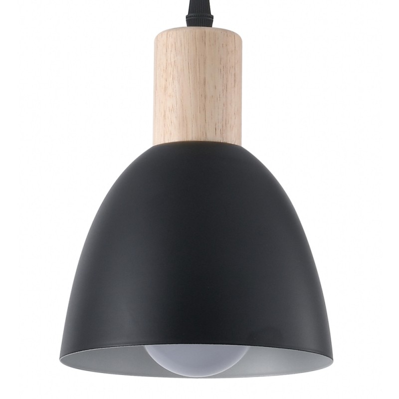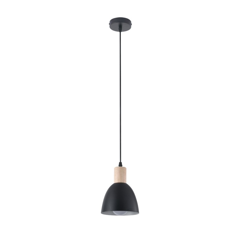 Nordic style pendant lamp. Ceiling lamp in black with a decorative wooden piece on the shade. Its compact design of only 14 centimetres in diameter makes it an ideal solution for installing over the bedside table as lighting.