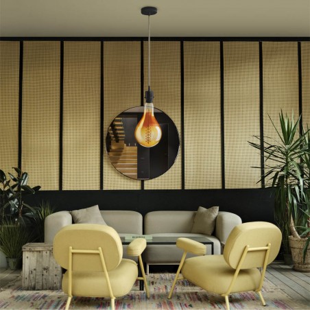 Black pendant with rope effect for E27 bulb. Ceiling lamp holder in black with rope effect cable, perfect to combine with a decorative E27 LED bulb.