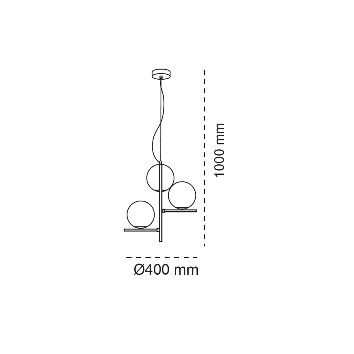 Boston decorative pendant lamp with three lights. Pendant lamp with a design inspired by the minimalism of Scandinavian style. Black metal structure and three spherical lampshades in smoked effect glass. Ceiling lamp for decorative lighting in a living room, shop or café.