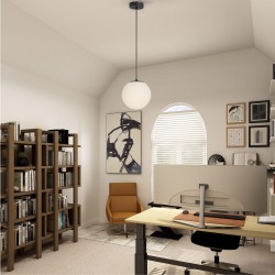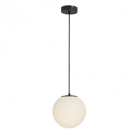 Pendant lamp with spherical opal glass lampshade. Ceiling lamp for the decorative lighting of a room in a house, a shop or a restaurant. Spherical opal glass lampshade. Capacity to fit an E14 LED bulb.
