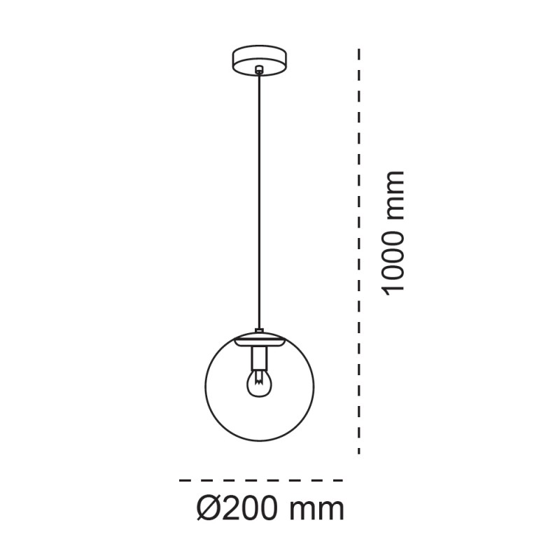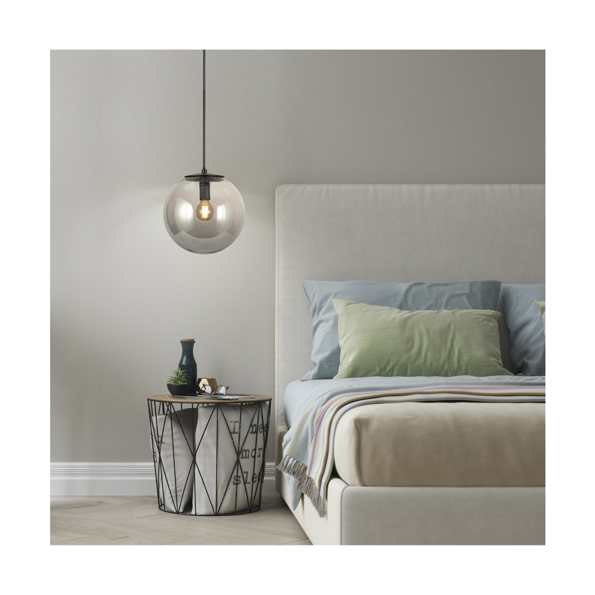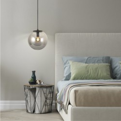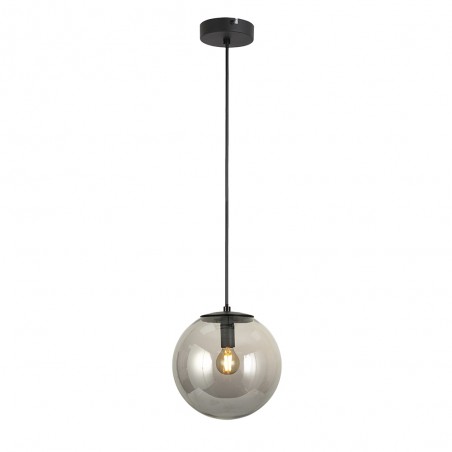 Pendant lamp with spherical lampshade in smoked glass. Ceiling lamp for the decorative lighting of a room in a house, a shop or a restaurant. Spherical glass lampshade with smoked finish. Capacity for one E14 LED bulb.