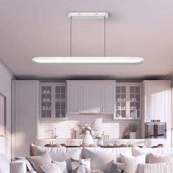 LED pendant lamp Morfeo for living rooms and spacious kitchens. With the remote control you can select the colour temperature between warm, neutral white or cool (3000-4000-5500K). LED ceiling lamp for functional lighting of a kitchen worktop or dining table. White metal structure and polycarbonate diffuser. Remote control.
