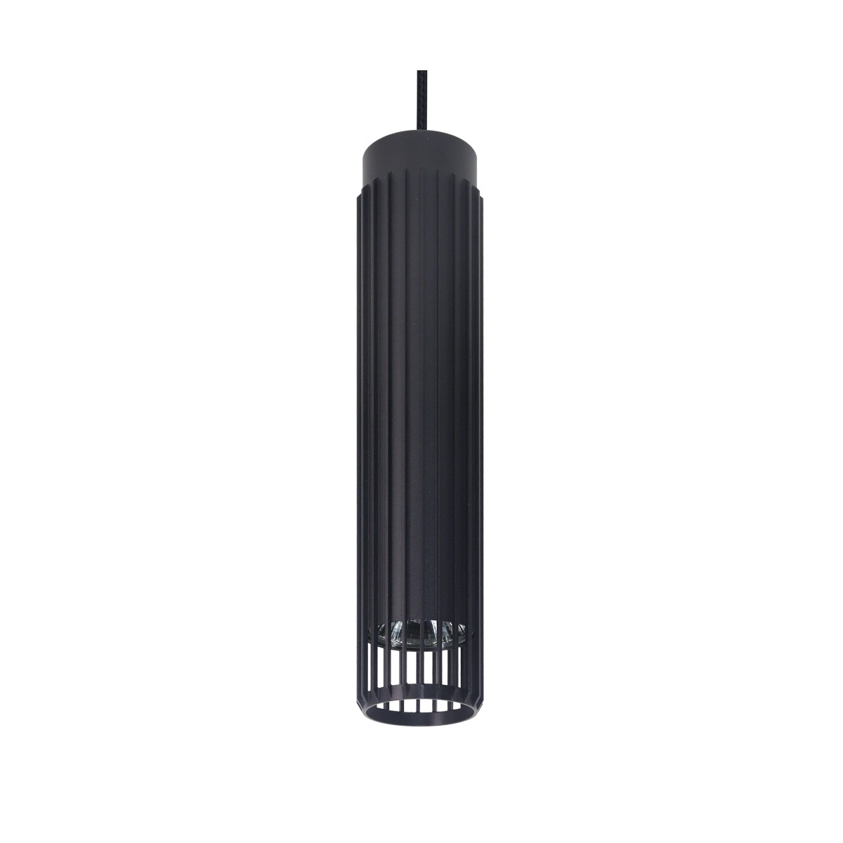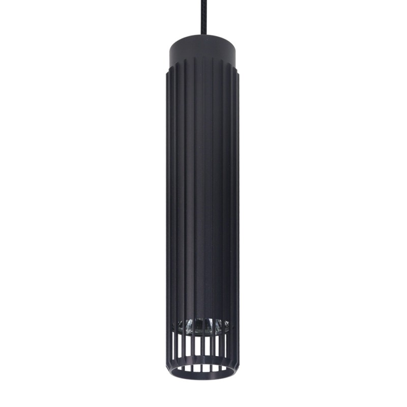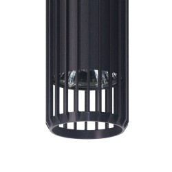 Sahara pendant lamp for indoor lighting. Cylindrical design in relief with grille bottom. Made of sandblasted black finish aluminium. Operates with a GU10 LED bulb Max. 10W (not included). Sahara decorative lighting collection.