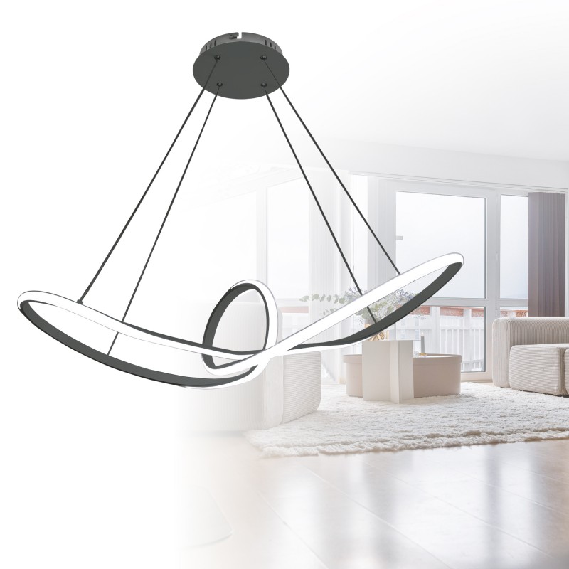 Pendant ceiling lamp with a modern design. Integrated LED lighting that can be adjusted using the remote control or mobile app. The height of the lamp can be easily adjusted during installation