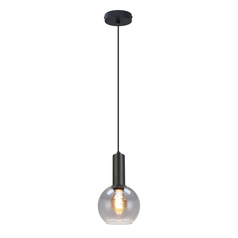 Ceiling pendant lamp with smoked glass shade and adjustable cable length. Suitable for E27 bulbs, not included with the lamp.