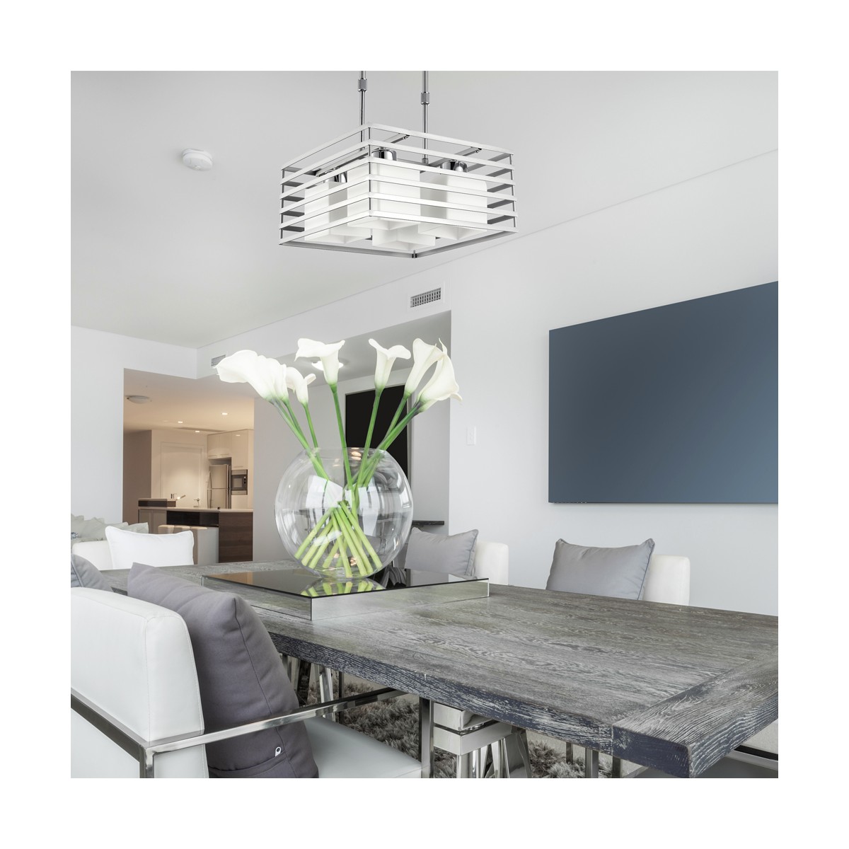 Square pendant light with an outside lamp shade in silver colour and 4 glass lamp shades inside to protect the bulbs. Thanks to its shape it can be a good choice to light square dining tables or to be used in modern kitchens by adjusting it to different height levels. Combine it with the cell table lamps or flush wall lights to complete your lighting needs. *Bulbs not included.