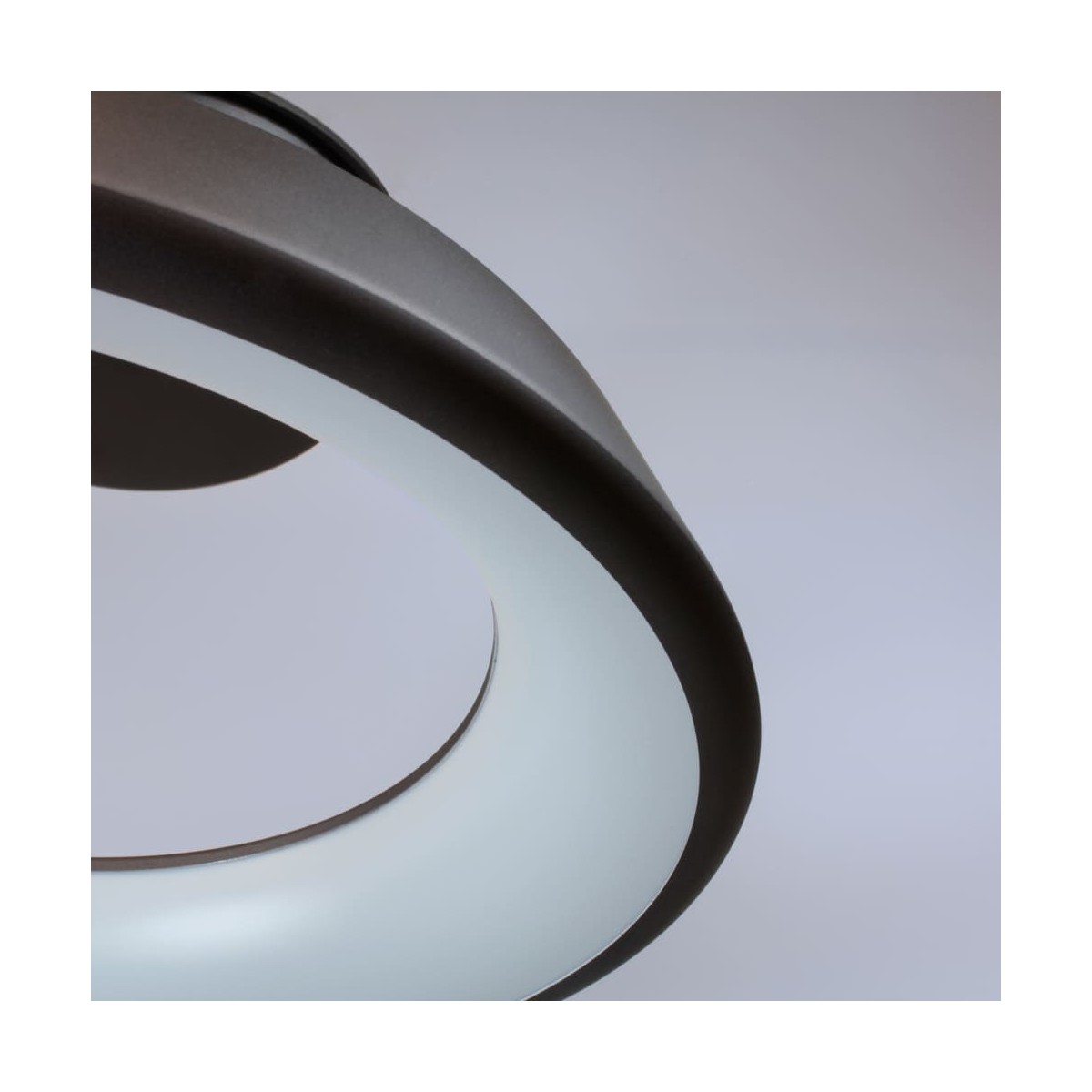 Pendant ceiling lamp with warm 3000K LED light. The height of the lamp can be easily adjusted by means of a simple system concealed in the rosette. Both the rosette and the ring of the lamp are made from aluminium with an acrylic diffuser that allows the light to pass through while reducing the glare index. You can find the lamp in three different finishes; white, brown and silver.