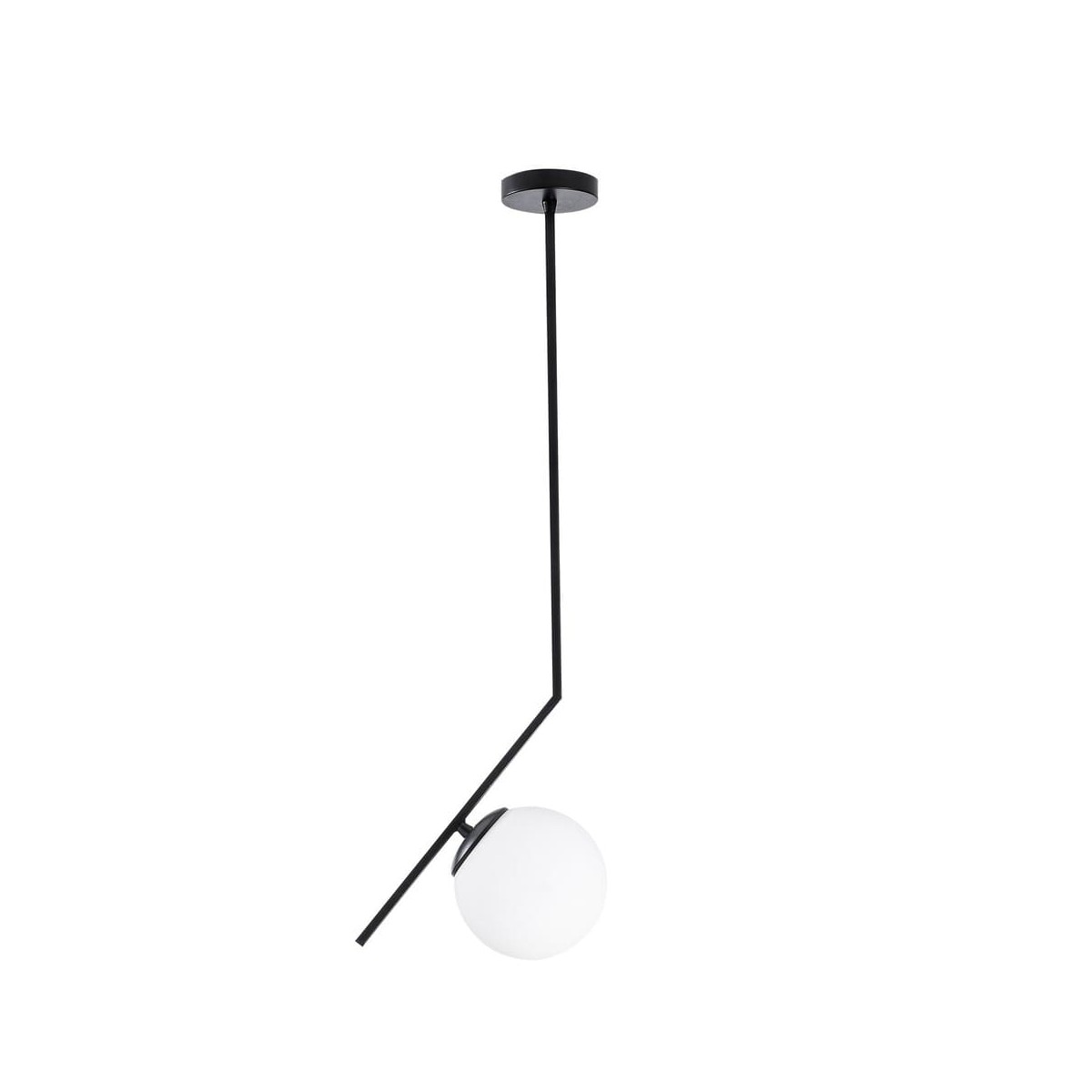 Decorative pendant lamp with one light and a 74 cm high matt white glass shade. Modern design with black lacquered body. For E27 bulbs, not included.