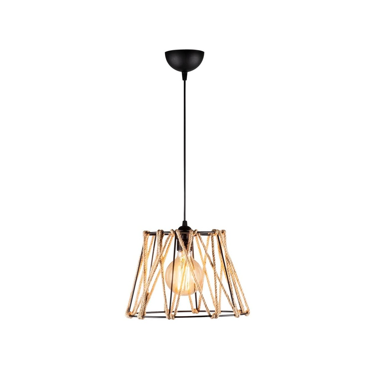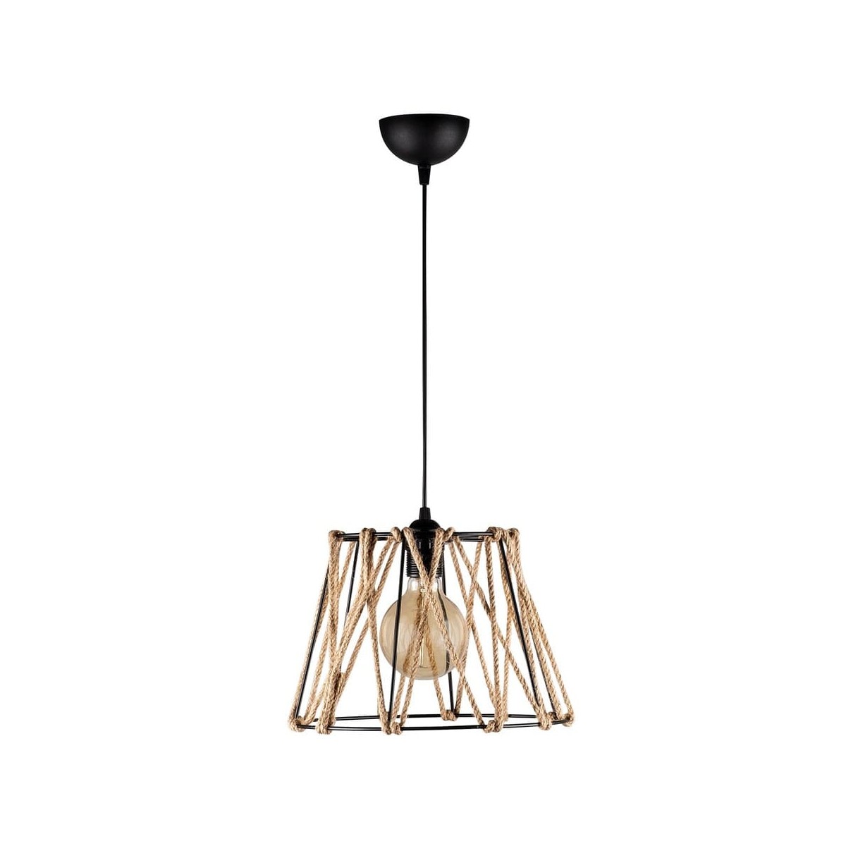Decorative pendant ceiling lamp with adjustable cable length. Black lacquered metal structure with natural style shade made from hemp rope. It allows to create different decorative lighting compositions, adapting to different spaces, by adjusting the height of the lamp. Perfect for rustic style dining rooms, living rooms and bedrooms. For E27 bulbs, not included.