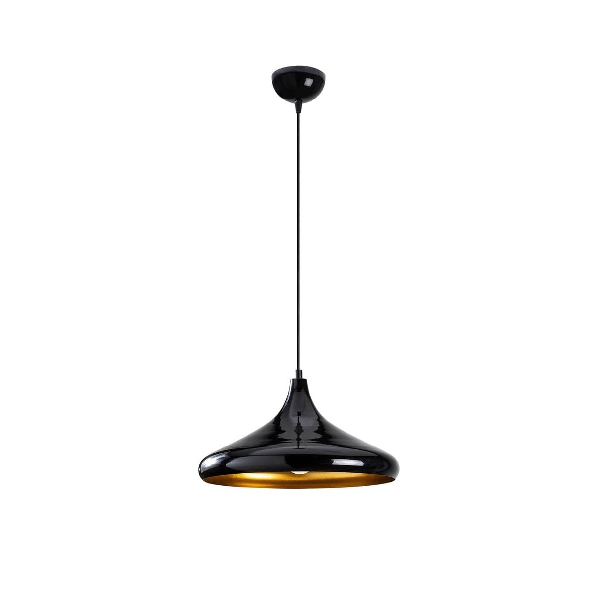 Deco pendant ceiling lamp with adjustable cable length up to 90cm. Shiny black metal shade with golden interior. It allows to create different decorative lighting compositions, adapting to different spaces, by adjusting the height of the lamp. For E27 bulbs, not included.