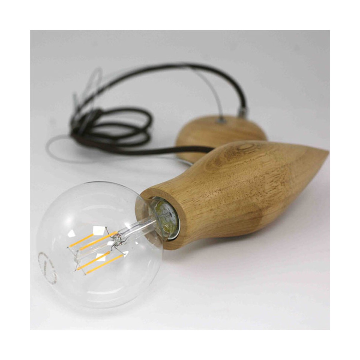 Pendant lamp holder designed in lacquered wood with steel cord and brown fabric cable to provide a natural and cozy look. This type of lamp is a simple way to light any space with something attractive and eye-catching. It can be adjusted to different height levels. It can make a perfect match with a vintage filament LED bulb. *Bulb not included.